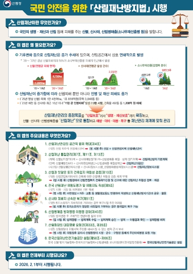 경상북도가 기후 위기로 인한 극한 호우와 대형 산불 피해지의 지반 약화에 대비해‘산사태 피해 제로’를 위한 산사태 예방 대책을 추진한다.1. 우기 전 완료 목표, 622억 원 규모 사방 인프라 전격 투입경북도는 3월 초 동절기 공사 중지 해제와 동시에 총 622억 원(국비 436억 원, 도비 131억 원, 시군비 55억 원)의 예산을 투입하여 대대적인 사방 사업에 착수한다. 여름철 장마 전 사업 완료를 목표로 도민의 생명과 재산을 지키는 안전망을 조기에 구축할 계획이며, 주요 사업으로는 ▲사방댐 100개소 ▲계류보전 60km ▲산지사방 24ha ▲산림유역관리 18개소 등이다.사방사업 완료 후에도 정기점검과 준설사업 등을 통하여 시설이 상시 제 기능을 발휘하도록 관리할 예정이다.2. 산사태취약지역 체계적 관리와 주민 안전 교육 실시사방사업에만 그치지 않고, 데이터에 기반한 산사태취약지역을 체계적으로 지정·관리·홍보한다. 산사태취약지는 산사태 발생 우려 지역 실태조사를 통해 지정되며, 표지판 설치를 통해 주민들에게 위험 정보를 제공한다. 또한 취약지역 내 주민들을 전문가가 직접 방문해 산사태 발생징후, 대피소 위치, 대피요령 등 현장에서 교육하는‘찾아가는 산사태예방 교육’을 실시하여 산사태에 대한 주민의 경각심을 높인다.3. `산림재난방지법`시행으로 산사태위험관리 및 복구권한 강화올해 2월 1일부터 시행된`산림재난방지법`에 따라 산림재난 관리의 실효성이 대폭 높아졌다.먼저, 관리 범위가 산림뿐만 아니라 산림 인접 지역(경계로부터 50m 이내)까지 확대되어 보다 촘촘한 안전관리가 가능해졌다. 또한, 산사태 피해지의 신속한 복구 시 토지소유자가 정당한 사유 없이 거부할 경우, 별도의 동의 없이도 복구 사업을 시행할 수 있는 법적 근거가 마련되어 신속한 산사태 대응이 가능해질 전망이다.4. 도민 참여 및 당부 사항경북도는 기존 사방시설의 방재 효과가 입증되고 있고, 법 시행으로 관리대상이 산림 인접지까지 넓어진 만큼 사방사업 투입 예산을 지속적으로 확대할 방침이다. 사방사업 대상지는 산사태취약지역 내 위험도에 따라 우선 선정되며, 관련 사업 신청은 각 시·군 산림 부서를 통해 할 수 있다.최순고 경상북도 산림자원국장은 내 가족의 생명과 재산을 지키는 첫걸음은 예방과 대비뿐이라고 강조하며 “도민 여러분께서는 기상특보와 산림재난 문자에 귀를 기울이고, 위험 징후 감지 시에는 즉시 안전한 곳으로 대피하길 당부드린다”라고 말했다.