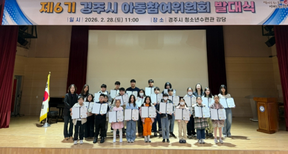 경주시는 지난 2월 28일 청소년수련관 강당에서 ‘경주시 제6기 아동참여위원회 발대식’을 개최하고 아동의 정책 참여 확대와 권리 증진을 위한 본격적인 활동에 들어갔다고 4일 밝혔다.이날 발대식에는 아동참여위원 31명과 아동권리지킴이, 아동참여지원단(멘토) 6명이 참석했으며, 위촉장 수여를 시작으로 아동권리 교육과 정기회의가 진행됐다.아동참여위원회는 2020년 8월 제1기 출범 이후 올해로 6기째를 맞았으며, 경주시에 거주하는 초등학생과 중학생 31명으로 구성됐다. 위원회는 아동을 대표해 아동권리 홍보와 캠페인, 아동 관련 행사 참여, 아동정책 제안 등 다양한 활동을 통해 아동의 의견을 시정에 반영하는 역할을 수행한다.지난 제5기 위원회는 아동권리지킴이인 이지희 동국대학교 교수의 지도 아래 월 2회 정기활동을 이어가며 ‘아동권리 골든벨’ 개최, 아동권리 책자 제작 참여, 어린이날 아동권리 홍보 부스 운영 등 활발한 활동을 펼쳤다.김유경 경주시 아동청소년과장은 “아동이 지역사회의 당당한 구성원으로서 의견을 제시하고 정책에 참여할 수 있도록 적극 지원하겠다”며, “아동의 권리가 존중받는 아동친화도시 조성에 힘쓰겠다”고 말했다.