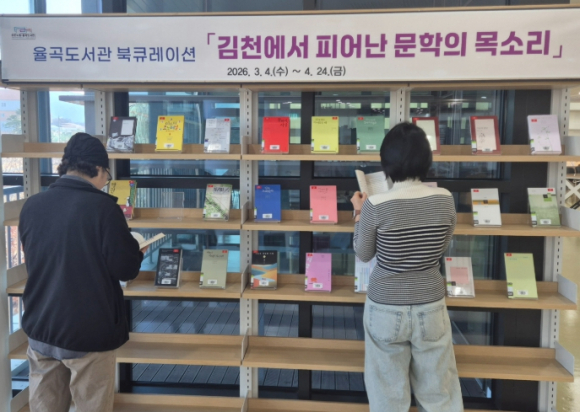 김천시립율곡도서관은 오는 3월 10일 개최하는 김중혁 작가 초청강연회와 연계하여, 김천 출신 문인들의 작품 세계를 조명하는 북큐레이션을 개최한다. 도서 전시의 주제는 `김천에서 피어난 문학의 목소리`이며, 전시는 오는 3월 4일부터 4월 24일까지 율곡도서관 2층 일반자료실에서 운영된다. 이번 전시는 김천에서 태어나 한국 문단에서 활발히 활동하고 있는 김연수, 문태준, 김중혁 작가의 대표 작품을 선별해 각 작가의 문학적 특징과 세계관을 한자리에서 살펴볼 수 있도록 기획됐다. 전시 도서는 『이토록 평범한 미래』를 비롯해 총 26권으로, 소설과 시를 아우르는 작품들로 구성된다. 작품을 통해 인간과 사회에 대한 통찰, 섬세한 감성, 동시대적 감각 등 각기 다른 문학적 결을 비교하며 감상할 수 있다. 이신기 김천시립도서관장은 “김천에서 피어난 문학의 성과를 시민들과 함께 나누고자 이번 전시를 마련했다.”라며, “지역 문인의 작품을 통해 김천의 문화적 자산을 재발견하고, 시민들이 문학과 더욱 가까워지기를 바란다.”라고 전했다. 한편, 전시는 별도의 신청 없이 도서관 이용 시간 내 누구나 자유롭게 관람할 수 있다.