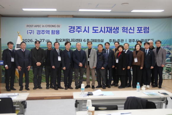 경주시가 황오커뮤니티센터에서 ‘(구)경주역 활용 도시재생 혁신 포럼’을 개최했다.이번 포럼은 지난달 27일 구(舊)경주역과 폐철도 부지를 활용한 도시재생 국가시범 혁신지구 사업 추진 전략을 마련하고, POST-APEC 시대 세계역사문화글로벌도시 경주의 비전에 부합하는 정책 대응 방안을 모색하기 위해 마련됐다.이날 행사에는 경상북도, 경주시, 한국토지주택공사(LH), 국가철도공단, 신라문화유산연구원 등 각계 전문가와 관계자 70여 명이 참석했다.기조발제는 한국토지주택공사 인프라융합연구실 이상준 박사가 맡아 ‘국가 도시재생 정책 방향 및 경주형 도시재생 추진 전략’을 주제로 정부 정책 흐름과 혁신지구 추진 방향을 제시했다.이어 경상북도 김호진 기획조정실장이 ‘경주 발전구상 전략과 현안 사업’을, 동국대학교 한광야 교수가 ‘(옛)경주역의 도시설계 이슈와 방향’, 국가철도공단 김정곤 부장이 ‘철도 재산 운영 및 철도 유휴부지 활용 방안’을 각각 발표했다.또 신라문화유산연구원 김권일 학예연구실장은 ‘(구)경주역 매장유산 현황과 도시재생 연계 방안’을, 경주시 도시계획위원회 김헌국 위원은 ‘국가시범지구 지정 대응 전략과 지역 실행 방안’을 제안했다.종합토론은 김경대 경주시 도시정책관이 좌장을 맡아 진행됐으며, 참석 전문가들은 구경주역 일원을 중심으로 한 도시재생 혁신지구 지정 필요성과 실행 전략에 대해 심도 있는 논의를 이어갔다.경주시는 이번 포럼을 계기로 3월부터 구경주역 폐철도부지 도시재생 혁신지구 지정 용역을 추진하고, 국토교통부 도시재생 국가시범 혁신지구 공모에 대응할 계획이다.주낙영 경주시장은 “구경주역은 경주의 역사성과 상징성을 지닌 핵심 공간”이라며 “중앙정부 정책과 연계한 체계적인 대응 전략을 마련해 원도심 활성화와 미래 성장 기반을 동시에 구축하겠다”고 말했다.