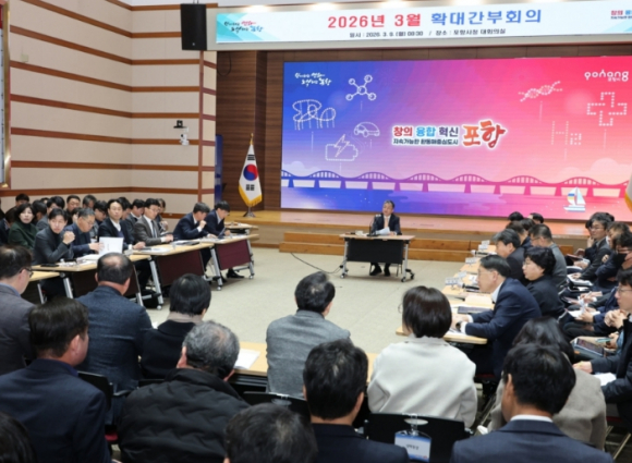 포항시는 9일 장상길 포항시장 권한대행 주재로 3월 확대간부회의를 개최하며 주요 현안의 흔들림 없는 업무 추진에 총력을 다하기로 했다. 이날 회의는 2025년도 성과관리 종합 평가 우수부서 시상에 이어 국별 주요 업무 현황을 공유하는 순으로 진행됐다. 특히 시는 최근 중동 사태로 인해 지역 산업과 민생 경제에 미칠 영향에 대해 면밀히 모니터링하고, 선제적인 대응 체계 구축을 위해 에너지 위기대응 비상대책 상황반을 운영하고 있다. 장 권한대행은 유가 상승과 에너지 수급 불안이 지역 산업과 시민 생활에 미칠 피해를 최소화하기 위해 정부의 시장 안정화 조치에 맞춰 시 차원에서 할 수 있는 모든 노력을 다해줄 것을 주문했다. 이어 지역 경제에 활력을 불어넣기 위해 재정 신속 집행에 속도를 내는 한편, 지속 가능한 성장 동력을 마련하기 위해 국비 확보에 만전을 기하 기로 했다. 또한 주요 역점 사업인 복합해양레저관광도시 추진 및 통합 돌봄 체계 구축 등에도 박차를 가할 방침이다. 이와 함께 봄철 해빙기 안전 점검 강화 및 산불 예방에 각별한 주의를 기하고, 곧 다가올 여름철을 대비한 재난 대응 사전 점검 등 준비에 철저히 해 줄 것을 주문했다. 또한, 지방선거를 앞두고 공직자의 정치적 중립과 공직기강 확립을 강조했다. 장상길 권한대행은 “권한대행 체제하에서 현안 사업의 차질 없는 추진을 위해 전 공직자가 함께 노력해 달라”면서, “다가오는 지방선거가 공명정대하게 치러질 수 있도록 선거 업무에도 만전을 기해 달라”고 말했다.