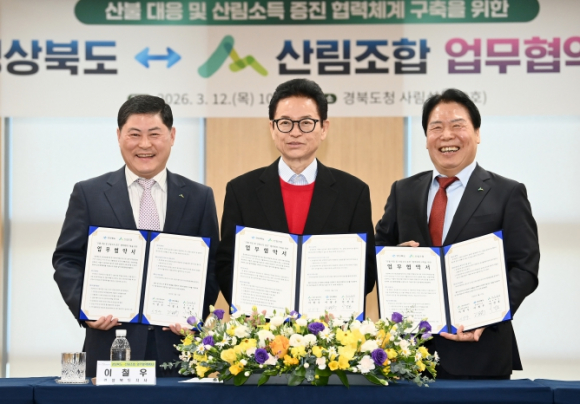 경상북도는 3월 12일 도청 사림실에서 산림조합과 ‘산불 대응 및 산림소득 증진을 위한 업무협약(MOU)’을 체결하고 산림 재난 대응과 임산업 발전을 위한 협력체계를 구축했다.이날 협약식에는 경상북도지사를 비롯해 이달우 산림조합중앙회 대구경북지역본부장, 이건호 대구경북산림조합장협의회장을 포함한 지역 산림조합장 등 20여 명이 참석했다.이번 협약은 산불 예방·대응 협력과 산림자원 기반 소득 창출 확대를 목표로 경상북도와 산림조합 간 공동 협력체계를 강화하기 위해 추진됐다.경상북도는 전체 면적의 약 70%에 달하는 129만 ha가 산림으로 이루어져 있어 산불 등 산림 재난에 대한 체계적인 대응이 무엇보다 중요하다. 특히 기후변화로 대형 산불 위험이 증가함에 따라 예방 중심의 대응과 신속한 현장 협력체계 구축이 필요하다는 지적이 제기되어 왔다. 이에 따라 경상북도와 산림조합은 협약을 통해△ 산림조합 임직원 및 조합원을 활용한 산불 감시·예방 활동 협력△ 산불 발생 시 신속한 정보 공유 및 진화 활동 지원△ 산불 피해지 복구와 산림자원 회복 협력△ 임산물 생산·유통·가공 등 산림소득 증진 협력△ 임업인 육성과 산림경영 활성화 지원 등 다양한 분야에서 협력을 강화하기로 했다.특히 지역 산림 현장에 대한 이해도가 높은 산림조합의 조직망을 활용해 산불 초기 대응 역량을 높이고, 피해 복구와 산림자원 관리에도 공동 대응할 계획이다.경북에는 산림조합중앙회 소속 대구경북지역본부를 비롯해 22개 지역 산림조합이 있으며 약 525명의 임직원과 14만 2천여 명의 조합원이 활동하고 있어 산림 관리와 임업 지원에 중요한 역할을 하고 있다.또한 경상북도는 송이, 대추, 감 등 10개 임산물 품목에서 전국 생산 1위를 차지하고 있으며 임산물 총 생산액도 약 1조 4천억 원 규모로 전국 최대 수준을 기록하고 있다.경북도는 이번 협약을 계기로 산림을 단순한 보존 대상이 아닌 소득과 산업의 기반으로 활용하는 정책을 본격 추진해 임업인의 안정적인 소득 기반을 확대해 나갈 방침이다.이철우 경상북도지사는“경북은 산림 비중이 높은 지역으로 산불 예방과 대응을 위해 지역 산림을 가장 잘 아는 산림조합과의 협력이 매우 중요하다”라며, “산림조합이 지역 임업인의 든든한 동반자로서 산불예방과 대응은 물론 산림경영 활성화와 성공적인 임업 소득 모델 발굴에도 큰 역할을 해주길 기대한다”고 밝혔다.