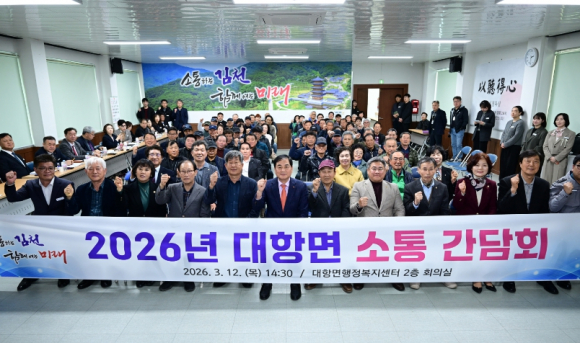 김천시 대항면(면장 허범선)은 3월 12일 대항면 행정복지센터 2층 회의실에서 소통 간담회를 개최했다. 이날 간담회에는 대항면 기관·단체장과 이장, 주민 등 100여 명이 참석해 시정 운영 방향을 공유하고 지역 현안과 주민 생활과 관련된 다양한 의견을 나누는 시간을 가졌다. 간담회는 국민의례를 시작으로 참석자 소개 및 인사말, 기념사진 촬영, 시정 운영 방향 설명, 소통의 시간 순으로 진행됐다. 특히, 소통의 시간은 지역 발전과 생활 불편 사항 등에 대한 건의 및 답변 형식으로 진행되어 참석자들의 큰 호응을 얻었다. 배낙호 김천시장은 올해 신년 화두인 『이청득심(以聽得心)』을 강조하며 “시민의 목소리에 귀 기울여 듣는 것이 시정 운영의 가장 중요한 출발점”이라며, “앞으로도 시민과 적극적으로 소통하며 시민이 체감할 수 있는 시정을 추진해 나가겠다.”라고 말했다. 허범선 대항면장은 “이번 간담회는 주민들의 다양한 의견을 직접 듣고 시정에 반영할 수 있는 의미 있는 소통의 자리였다.”라며, “앞으로도 주민과 행정이 함께 협력해 지역 발전을 위해 노력해 나가겠다.”라고 밝혔다. 한편, 김천시는 2월 23일 지좌동을 시작으로 김천시 22개 읍면동을 순회하며 소통 간담회를 개최했으며, 시민과 직접 만나 다양한 의견을 듣는 현장 중심의 소통 행정을 이어가고 있다.
