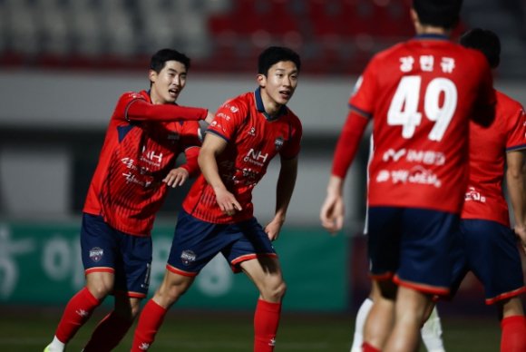 끝까지 포기하지 않고 싸운 끝에 소중한 승점 1점을 쌓았다.김천상무프로축구단(대표이사 이재하)이 3월 17일 화요일 19시 30분, 김천종합운동장에서 열린 ‘하나은행 K리그1 2026’ 4R 홈경기에서 광주FC(이하 광주)와 1대 1로 비겼다. 이른 시간 퇴장으로 수적 열세에 처한 김천상무는 선제골을 내줬지만, 후반 추가시간 극적인 동점골로 무승부를 기록했다.김천상무는 4-4-2 포메이션을 가동했다. 백종범이 골키퍼 장갑을 꼈다. 백포는 박철우, 이정택, 김현우, 김태환이 구축했다. 중원에서는 김이석과 박태준이 호흡을 맞추었다. 양쪽 날개에는 홍윤상과 전병관이 자리했다. 이어 이건희와 이상헌이 최전방에 포진했다. 퇴장 변수, 10명으로 버티며 전반 0대 0 마무리김천상무는 경기 시작과 함께 아쉬움을 삼켰다. 전반 2분, 수비 진영에서 넘어온 공을 이건희가 상대 수비와 경합하며 떨어뜨렸다. 뒤에서 달려오던 홍윤상이 이를 마무리했으나, 슈팅이 뜨고 말았다.기회 뒤에 바로 변수가 발생했다. 전반 7분, 김천상무가 VAR 끝에 퇴장으로 1명을 잃으며 수적 열세에 처하게 됐다. 이어 경기는 광주가 주도하는 흐름에서 김천상무가 역습을 노리는 형태로 전개됐다.전반 44분, 페널티박스 정면에서 프리킥을 내주며 위기에 처했지만, 수비벽이 견고하게 버티며 막아냈다. 계속해서 광주의 슈팅이 골대를 강타하기도 했지만, 실점을 허용하지 않으며 전반을 마쳤다. PK 선제골 허용 ▶ 추가시간 고재현 극장 동점골! 후반 48분, 김천상무가 포문을 열었다. 전병관의 측면 돌파에 이은 크로스가 왼쪽에서 쇄도하던 박철우에게 향했다. 이를 과감한 중거리슛으로 마무리했지만, 살짝 빗나가며 아쉬움을 삼켰다. 이어 전병관도 한 차례 과감한 슈팅으로 골문을 위협했다.경기가 중반으로 접어들며 수적 우위를 살린 광주의 공세가 이어졌다. 김천상무는 강민규와 고재현을 투입하며 분위기 반전을 노렸지만, 끝내 후반 65분, 페널티킥으로 실점을 허용했다. 김천상무는 실점을 허용한 뒤 동점을 위한 총공세를 펼쳤다. 후반 74분, 교체로 투입된 김인균이 슈팅을 시도했다. 임덕근과 민경현도 교체로 필드를 밟으며 활력을 더했다. 후방에서의 롱패스를 적극 활용하는 전술적 변화도 가져갔다. 후반 추가시간은 8분이 주어졌고, 마침내 골이 터졌다. 강민규의 크로스를 고재현이 환상적인 발리슛으로 마무리하며 광주의 골망을 갈랐고, 1대 1 무승부로 경기를 마쳤다.경기 종료 후 기자회견에서 주승진 감독은 “먼저 주중 밤 경기임에도 불구하고 찾아와주신 팬 여러분께 감사하다. 응원에 힘입어 수적 열세에서도 승점 1점을 올릴 수 있었다. 선수들도 어려운 상황에서 포기하지 않고 각자의 역할 잘 수행했기 때문에 무승부를 거둘 수 있었다. 오늘 선수들이 수적 열세에도 잘해줘서 희망적인 부분이 있었다. 다시 한번 선수들을 칭찬하고 싶고, 다음 경기도 잘 준비한다면 승리할 수 있을 것이라고 생각한다.”라고 총평했다.한편, 김천상무는 3월 22일 울산 원정, 4월 5일 인천 원정에 이어 4월 12일 안양과 홈경기를 치른다.