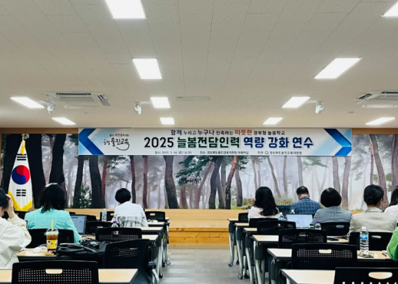 울진교육지원청은 2025년 5월 16일, 울진교육지원청 대회의실에서 울진 관내 초등학교 늘봄지원실장 4명과 늘봄행정실무사 12명을 대상으로 2025 늘봄전담인력 역량 강화 연수를 실시했다. 2025 늘봄전담인력 역량 강화 연수는 늘봄지원실장과 늘봄행정실무사들이 늘봄학교 운영 이해를 높이고 전문성을 강화하는 데 중점을 두었으며, 늘봄전담인력 간 협력과 소통 네트워크 구축과 업무 수행 능력 강화를 목표로 했다. 이번 연수에서는 월별 늘봄 업무 흐름, 행정실 및 교무실과의 협력 사항, 늘봄 업무 관련 실무 프로그램 활용법 등을 중심으로 실무적인 내용을 안내하고, 참석자들이 현장에서 바로 적용할 수 있는 정보를 제공했다. 울진교육지원청 이기협 교육장은“이번 연수를 통해 늘봄전담인력들이 교육 현장에서 주도적인 역할을 할 수 있는 전문성과 자신감을 갖추기를 기대한다”며, “앞으로도 늘봄학교의 안정적인 운영을 위해 현장의 목소리에 귀 기울이고 실질적인 지원을 아끼지 않겠다”고 밝혔다.