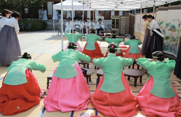 “갓을 쓰고, 비녀를 꽂으며 어른이 된다.”과거 조선시대, 소년과 소녀가 성인으로 나아가는 문턱에서 거쳤던 전통 성년의식이 구미에서 다시 살아났다.구미성리학역사관은 지난 17일 오후 2시, 영남대학교 HUSS 인문사회디지털융합인재양성사업단과 공동주관으로 성리학역사관 기획전시관 앞마당에서 전통 성년의식인 ‘관례와 계례, 재현 행사’를 개최했다. 행사에는 총 50명의 시민과 방문객이 참석해 높은 관심을 보였다.이번 행사는 구미성리학역사관이 전통문화 교육의 중심지로서, 인간이 살아가면서 거치는 네 가지 큰 예식인 ‘관혼상제’ 중 첫 관문인 관례(남자 성인식)와 계례(여자 성인식)를 예법에 따라 재현함으로써, 성년의 의미를 되새기고 유교문화의 가치를 미래세대에 전하기 위해 마련됐다.행사는 남자에게는 상투를 틀고 갓(冠)을 씌워주고, 여자에게는 머리를 올려 비녀(笄)를 꽂아주는 순으로 진행됐으며, 어른에게 술을 배우고 이름 대신 사용할 자(字)를 받는 전통 절차까지 충실히 따랐다. 단순한 재현을 넘어, 미성년에서 성년으로 전환되는 상징적 의미를 현장에서 직접 보고 체험하며 전통문화의 정신적 가치를 공감할 수 있는 기회가 됐다.구미성리학역사관 관계자는 “현대 사회에서 잊히기 쉬운 전통 예식이 단순한 행사가 아닌, 성인의 책임과 예를 일깨우는 교육적 장이 되기를 바란다”며 “오는 하반기에도 한 차례 더 이 행사를 마련해 보다 많은 시민과 청소년이 전통문화의 소중함을 직접 체험할 수 있도록 하겠다”고 했다.