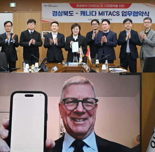 경상북도는 1일 도청에서 양금희 경제부지사와 Mitacs 대표 스티븐 루카스(Stephen Lucas), 대학 관계자 등이 화상으로 참석한 가운데 캐나다 비영리 연구 협력기관인 Mitacs(마이탁스)와 업무협약을 체결하고, 항공 분야 청년 인재 양성 및 산·학·연 연계 산업 협력을 모색하기로 했다.이번 협약은 지역 대학생들의 해외 연구경험 기회를 넓히고, 항공, 드론, 미래 모빌리티(차세대 교통수단), 인공지능 등 미래성장산업 분야에 대한 국제협력 기반을 확대하기 위해 마련됐다. Mitacs는 25년간 산업계와 학계, 글로벌 파트너를 연결하며 경제성장과 미래 인재 양성에 기여해 온 캐나다 혁신 연계기관이다. 학부생부터 박사후 연구원까지 대상으로 기업 공동 펀딩 기반의 인턴십 프로그램을 운영하며 산·학·연 협력을 촉진하고, 연구 성과가 사업화로 이어질 수 있도록 지원하고 있다.특히 학부생이 캐나다 대학에서 일정기간 연구과제에 참여하는 국제 연구인턴십 프로그램은 참가 학생들에게 생활비와 주거비, 의료보험 등도 일부 지원하고 있다.이번 협약에는 경상북도와 Mitacs 간 연계 강화를 기반으로 캐나다 대학 연구인턴십 프로그램 참여 등 인재양성 뿐 아니라 산업협력에 관한 내용도 담겼다. 양 기관은 먼저 항공, 드론, 미래모빌리티(차세대 교통수단) 분야를 중심으로 대학·기업·연구기관이 함께하는 공동 연구개발 협력을 추진하고, 향후 인공지능, 방산, 로봇 등 다양한 분야로 협력의 폭을 넓혀 나가게 된다.또한 대한민국과 캐나다 기업·연구기관·대학이 함께 참여하는 협력 기반을 마련해, 지역대학의 인재양성과 기업이 필요로 하는 기술개발을 연계하고, 이를 국제 공동연구와 산업협력으로 확대할 계획이다.MITACS 스티븐 루카스 대표는 “양국이 전략적 핵심분야에서 경쟁력을 높이기 위해 인재와 지식, 협력 강화는 매우 중요하다. 경상북도와 협약을 계기로 항공우주, 첨단모빌리티, 인공지능 분야 응용연구 협력을 확대할 것이다. 기관 간 연계는 연구역량을 높이고, 산업수요를 연결하며, 혁신 성과 창출에도 기여할 것이다”고 말했다경상북도 양금희 경제부지사는 “이번 협약은 경북의 청년들이 세계적 수준의 연구현장을 경험하고, 지역 대학과 산업계가 국제 협력망을 넓혀가는 중요한 출발점”이라며 “앞으로도 청년들이 캐나다 대학 연구인턴십 등 다양한 국제 프로그램에 참여할 수 있도록 지원하고, 지역 전략산업과 연계한 공동연구와 산업협력도 지속적으로 확대해 나가겠다”고 밝혔다.