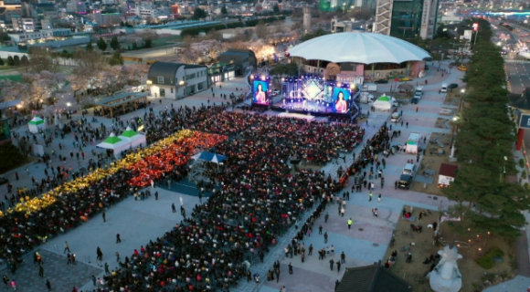 만개한 벚꽃과 대형 공연의 만남이 안동의 밤을 인산인해로 물들였다. 안동시는 축제 2일 차인 지난 2일, 낙동강변 벚꽃길과 탈춤공원 일대에 구름 인파가 몰리며 성황을 이뤘다고 밝혔다.특히 이날은 제64회 경북도민체육대회 전야제 행사인 한마음 콘서트가 탈춤공원에서 개최되면서 축제장 일대는 이른 아침부터 공연을 기다리는 관람객들로 활기를 띠었다. 이날 콘서트에는 박서진과 코요태, 김희재, 손태진, 윤태화 등 정상급 가수들이 대거 출연해 전국 각지에서 몰려든 팬들의 시선을 사로잡았다.5,000석 규모로 준비된 공연장 인근에는 이른 시간부터 초대가수 팬들이 모여 대기하는 진풍경이 벌어졌다. 공연을 기다리는 관람객들은 대기 시간에 축제장을 오가며 낙동강변 벚꽃길을 산책하고, ‘벚꽃 소원 터널’과 ‘체리블룸 버블 라운지’ 등 올해 새롭게 선보인 감성 체험 공간을 이용하며 안동의 봄을 만끽했다.이번 축제는 타 지역 방문객의 유입이 두드러지며 안동의 새로운 매력을 알리는 계기가 됐다. 방문객들은 공연 관람과 함께 안동만의 차별화된 벚꽃 경관을 동시에 체험하며, 기존의 전통문화 중심 관광 이미지와는 또 다른 역동적인 봄철 관광지로서의 분위기에 높은 만족감을 보였다.저녁이 되자 축제장은 상춘객들로 가득 찼다. 벚꽃을 즐기려는 사람과 공연을 보러 온 사람들이 모이며, 탈춤공원과 인근 벚꽃 도로 일대에 엄청난 인파가 집중됐다. 축제장 내 식당가와 푸드트럭에는 긴 대기 줄이 이어졌으며, 이러한 열기는 공연이 끝난 늦은 밤까지 지속돼 인근 상권 활성화에도 큰 보탬이 된 것으로 분석된다. 안동시는 올해 벚꽃의 만개 시기와 대규모 공연 일정이 완벽하게 맞물리며 방문객의 체류시간과 소비가 활발하게 일어난 것으로 보고 있다. 안동시 관계자는 “벚꽃과 축제를 함께 즐기려는 방문객들의 발길이 이어지고 있다”며 “남은 축제 기간에도 많은 인파가 몰릴 것으로 예상되는 만큼 안전 관리와 프로그램 운영에 힘쓰겠다”고 말했다.