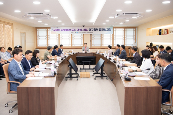 구미시는 지난 20일 시청 국제통상협력실에서 `구미형 장애없는 도시 조성 사업` 기본계획(2026~2030) 수립을 위한 연구용역 중간보고회를 개최했다.이날 보고회에는 장애인복지 단체와 시설장, 사회복지‧토목 분야 전문가, 관계 공무원 등 20여 명이 참석한 가운데, 연구용역을 수행 중인 ㈜에이치알디솔루션의 중간 성과가 공유됐다. 아울러 각계 의견을 수렴해 향후 사업의 추진 방향을 설정하는 시간을 가졌다.이번 용역에서 무장애 인프라 개선을 위해 시 전역을 도심권, 주거권, 산업단지권, 자연친화권 등 4개 권역으로 나누고, 권역별 특성을 반영한 맞춤형 개선방안을 제시했다. 주요 과제로는 ▲보행로 개선 ▲대중교통 접근성 향상 ▲공원시설 이용 편의성 증진 등이 포함됐다.특히 금오산과 지산샛강생태공원 등 시민은 물론 관광객 수요가 많은 주요 명소의 접근성 향상을 위한 방안도 중점 논의됐다. 현장조사를 통해 드러난 문제점을 바탕으로, 장애인뿐 아니라 모든 시민이 안전하고 편리하게 이용할 수 있는 실질적인 개선방향이 제시됐으며, 타 지자체 및 해외 유사 사례도 함께 소개됐다.시는 이번 보고회에서 제시된 의견을 바탕으로 연구용역 최종보고서 완성하고, 결과를 시 정책에 적극 반영해 단계적으로 추진해나갈 계획이다.김장호 구미시장은 “무장애 도시는 장애인뿐 아니라 노인, 임산부, 영유아 등 모든 시민이 함께 살아가는 열린 도시의 출발점”이라며 “이번 보고회를 계기로 실현 가능한 무장애 도시 로드맵을 구체화해 모두가 행복한 구미를 만들어가겠다”고 밝혔다.