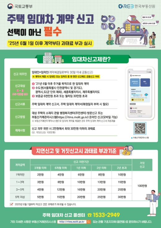 영주시는 ‘주택 임대차 신고제’ 계도기간이 오는 5월 31일 종료됨에 따라, 6월 1일부터 체결되는 계약부터 신고 의무 위반 시 과태료를 부과한다고 밝혔다.‘주택 임대차 신고제’는 임대차 계약의 투명성과 임차인의 권리 보호 강화를 위해 2021년 6월 1일부터 시행된 제도로, 정부는 그간 임대인과 임차인의 제도 적응을 위해 4년간 계도기간을 운영해왔다. 하지만 오는 6월부터는 계도기간이 종료되고, 본격적인 과태료 부과가 시행된다.신고 대상은 보증금 6천만 원을 초과하거나, 월세 30만 원을 초과하는 모든 주택 임대차 계약이다. 이는 신규 계약뿐 아니라 계약 갱신, 임대료 변경, 해제 계약도 포함되며, 임대인과 임차인 모두에게 신고 의무가 부여된다.신고 방법은 계약 체결일로부터 30일 이내, 관할 행정복지센터 방문 접수 또는 부동산 거래관리시스템(온라인·모바일 가능)을 통해 신고할 수 있다. 신고를 지연하거나 누락할 경우 최소 2만 원에서 최대 30만 원의 과태료가 부과되며, 허위 신고 시에는 최대 100만 원까지 부과된다.조종근 토지정보과장은 “계도기간 종료 이후에는 본격적인 과태료 부과가 시행되는 만큼, 임대차 계약 시 반드시 30일 이내에 신고해 주시길 바란다”며, “주민 여러분의 불이익이 발생하지 않도록 적극적인 협조를 부탁드린다”고 당부했다.
