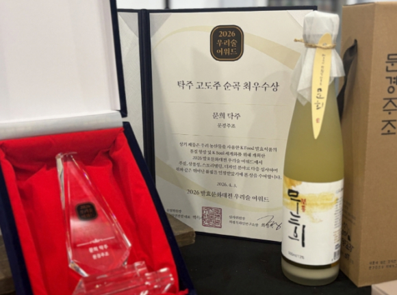 문경 지역의 전통 발효주 ‘문희탁주’가 2026년 K-푸드발효 문화대전 우리술 어워즈에서 다시 한번 우수한 품질을 인정받았다.지난 4월 3일부터 5일까지 서울 양재동 aT센터에서 열린 ‘2026 K-푸드 발효문화대전 우리술 어워즈’에서 문경주조가 출품한‘문희탁주’가 최우수상을 수상했다. 이번 행사는 동아일보와 Channel A가 공동 주최하고, 동아전람이 주관한 국내 대표 전통주 품평 행사다.수상작인‘문희탁주’는 알코올 도수 13도의 500mL 삼양주로, 문경 지역산 멥쌀과 유기농 찹쌀, 전통 누룩, 물만을 사용해 빚은 것이 특징이다. 특히 살구와 자두를 연상시키는 상큼한 산미와 부드러운 단맛이 조화를 이루는 균형 잡힌 풍미로 심사위원단의 높은 평가를 받았다.또한 황토 발효실에서 유약 처리하지 않은 전통 항아리를 활용해 발효와 숙성을 진행함으로써 인위적인 맛을 배제하고, 자연스럽고 깊은 풍미를 구현한 점이 차별화 요소로 꼽힌다.문경주조는 지난 수년간 각종 전통주 품평회에서 다수의 수상 실적을 거두며 품질 경쟁력을 지속적으로 인정받아 왔으며, 이번 수상을 통해 브랜드 경쟁력을 다시 한번 입증했으며, 지역 농산물을 활용한 전통주의 우수성을 보여주는 동시에 문경 전통주 산업의 경쟁력을 대외적으로 알리는 계기가 됐다.시 관계자는 “앞으로도 전통 방식과 지역 농산물을 활용한 고품질 전통주를 지속적으로 발굴하고, 전통주 산업이 지역 경제의 핵심 산업으로 성장할 수 있도록 지원을 강화해 나가겠다”고 밝혔다.