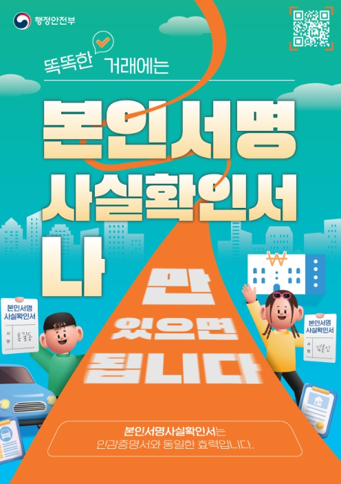 경주시는 인감증명제도의 비효율을 개선하고 시민 편의를 높이기 위해 인감증명서와 동일한 효력을 지닌 ‘본인서명사실확인서’ 이용 활성화에 나선다고 밝혔다.본인서명사실확인서는 인감 대신 본인의 서명을 확인해 주는 서류로, 은행 제출이나 각종 계약, 관공서 민원 처리 등 다양한 업무에 활용할 수 있다. 별도의 인감도장 없이 신분 확인과 서명만으로 발급받을 수 있어 이용이 간편한 것이 특징이다.발급을 희망하는 민원인은 신분증을 지참해 전국 시·군·구청 또는 읍·면·동 행정복지센터를 직접 방문하면 된다. 본인 확인 후 정해진 서식에 서명하면 즉시 발급되며, 본인 확인이 필요한 서류인 만큼 대리 발급은 불가능하다.전자본인서명확인서도 이용할 수 있다. 최초 1회 행정복지센터를 방문해 이용 신청을 하면 이후에는 정부24를 통해 온라인으로 발급받을 수 있다. 다만 전자본인서명확인서는 공공기관 제출용으로만 사용할 수 있다.수수료 부담도 적다. 인감증명서는 1통당 600원의 수수료가 부과되지만, 본인서명사실확인서는 2028년 12월 31일까지 무료로 발급된다.경주시는 인감도장 제작과 관리에 따른 불편을 줄이고, 시민들이 보다 편리하게 민원서류를 발급받을 수 있도록 본인서명사실확인서 제도 홍보를 지속해 나갈 방침이다.