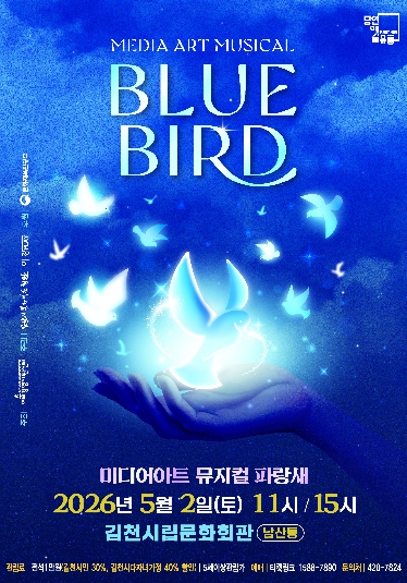 김천시 문화예술회관은 진정한 행복의 의미를 찾아 떠나는 신비로운 모험을 그린 미디어아트 뮤지컬 `파랑새`를 5월 2일 김천시문화회관(남산동)에서 개최한다. 이번 공연은 예술경영지원센터의 ‘2026년 공연예술 지역유통 지원사업’ 선정으로 국비 지원을 받아 개최되며, 전석 1만 원이라는 저렴한 가격으로 제공된다. 미디어아트 뮤지컬 `파랑새`는 미디어아트 영상기술을 통해 원작 속 초현실적인 공간들이 무대 위에 생생히 살아나며, 관객을 순식간에 동화 속 세계로 몰입시킨다. 노벨문학상 수상작인 모리스 메테를링크의 명작을 재해석한 이 작품은, 가난한 남매가 행복의 상징인 파랑새를 찾아 떠나는 여정을 통해 ‘행복은 언제나 우리 곁에 있다.’라는 메시지를 관객들에게 전할 예정이다. 예매는 4월 17일 14시부터 티켓링크 또는 김천시문화예술회관 누리집에서 가능하며 김천시민 30%, 김천시 다자녀가정 40% 할인 등을 받을 수 있다. 자세한 사항은 김천시 문화예술회관 누리집 공지사항을 확인하거나, 문화예술회관 사무실로 문의하면 된다.