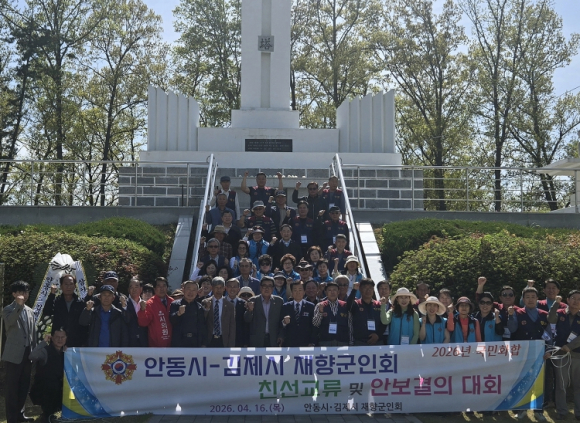 안동시재향군인회는 4월 16일부터 17일까지 이틀간 안동시 일원에서 ‘2026년 영․호남 향군 화합 행사’를 개최했다.이번 행사는 안동시와 김제시 재향군인회가 매년 정기적인 교류를 통해 쌓아온 두터운 우정을 확인하고, 급변하는 국제 정세 속에서 민간 안보 역량을 결집하기 위해 마련됐다. 행사에는 안동시 회원 80명과 김제시 회원 40명 등 총 120여 명의 향군 회원이 참석해 화합의 의미를 더했다.참가자들은 안동 충혼탑을 찾아 순국선열과 호국영령의 숭고한 희생정신을 기리는 참배를 진행한 뒤 ‘안보결의대회’를 개최했다. 이 자리에서 양 단체는 향군 조직의 역할을 되새기고, 지속적인 상호 교류를 약속하는 화합의 시간을 가졌다. 또한, 안보 행사와 더불어 참가자들은 유네스코 세계유산인 하회마을과 안동의 도심 속 역사공원인 웅부공원 등을 관람하며, 안동의 역사와 문화를 체험했다.김재년 안동시재향군인회장은 “영․호남을 대표하는 전통문화 도시인 안동과 김제가 향군이라는 이름 아래 손을 맞잡은 지 벌써 수년째에 접어들며, 형제의 우애를 나누고 있다”며, “이번 행사가 우리 사회의 통합과 굳건한 안보의식을 확산시키는 계기가 되길 바란다”고 전했다.안동시 관계자는 “김제시재향군인회 회원들의 안동 방문을 환영하며, 이번 행사가 안보 교류를 넘어 양 도시의 역사와 문화를 깊이 이해하는 계기가 되길 바란다”며, “앞으로도 이와 같은 민간 교류가 확대될 수 있도록 적극 노력하겠다”고 전했다. 한편, 안동-김제 향군 화합 행사는 매년 양 도시를 교차 방문하며, 영․호남 화합의 상징적인 행사로 자리잡고 있다.