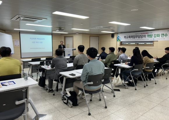 경상북도청송교육지원청은 2026. 4. 15. 14시 30분, 청송도서관 시청각실에서 관내 초‧중‧고 학교폭력 책임교사 총 21명을 대상으로 2026학년도 학교폭력 책임교사 역량 강화 연수를 실시했다. 이번 연수는 박준석 변호사를 강사로 초빙하여 학교폭력 책임교사들의 학교폭력 예방 방법 및 학교폭력 발생 시 사안 처리 주의점을 확인하고 효과적인 대응 방안을 공유하는 데 초점을 맞추었다. 연수에 참석한 교사들은 사안 조사의 구체적 방법과 유의점, 관련 학생 및 학부모와의 상담 방법, 관계 회복에 관한 내용을 주의 깊게 듣고 서로 의견을 나누는 활동을 통하여 학생, 교사, 학부모 모두가 만족하고 안전한 학교를 만들어가야겠다고 다짐했다. 남정일 교육장은 “학교폭력 사안의 정확하고 신속한 처리와 함께 인성교육을 통해 서로를 존중하고 배려하는 학교문화를 형성하고 학생의 행동과 맥락을 함께 고려하는 따뜻한 시선을 갖추길 바란다“고 전했다.