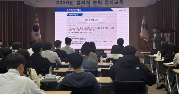 영천시는 17일 시청 대회의실에서 직원 80여 명을 대상으로 자치법규 입법 역량 강화를 위한 2026년 법제처 순회 법제교육을 실시했다. 이번 교육은 법제처 ‘찾아가는 현장 밀착형 교육’의 일환으로, 자치법규 입안에 대한 공직자들의 전문성을 높여 시민들에게 보다 나은 행정서비스를 제공하기 위해 마련됐다.이날 교육은 법제처 소속 서보경 한국법제연구원 연구위원이 강사로 나서 자치법규 입안 원칙 및 실무를 주제로 진행됐으며, 자치법규 입안 관련 기본 이론 및 주요 사례를 비롯해 총칙과 부칙 등 이론과 실무가 함께 다뤄졌다. 특히, 단순한 이론 전달에 그치지 않고 실무에서 활용할 수 있는 방법을 구체적으로 안내해 참석자들의 이해도를 높였다.시 관계자는 “자치법규는 시민들의 생활과 밀접한 관련이 있는 만큼, 이번 교육이 직원들의 법제 실무 역량을 한층 강화하는 계기가 되길 기대한다”며, “영천시는 앞으로도 신뢰받는 행정서비스 제공을 위해 지속적으로 노력하겠다”고 말했다.