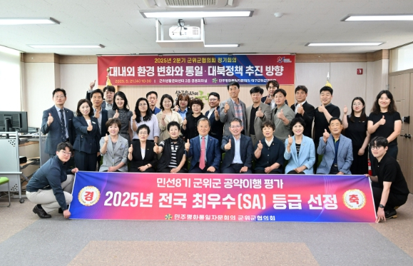 지난 21일 민주평화통일자문회의 군위군협의회(협의회장 이우석)는 군위 생활문화센터 회의실에서 김진열 군수, 자문위원 등 30명이 참석한 가운데‘대내외 환경 변화와 통일・대북정책 추진 방향’을 주제로‘2025년 2분기 정기회의’를 개최했다. 이날 정기회의는 △개회식, △자문위원 통일의견수렴, △제21기 군위군협의회 주요 사업실적 평가, △2025년 2분기 군위군협의회 주요 사업계획 논의 순으로 진행됐다. 이우석 협의회장은 개회사에서“21기 마지막 정기회의에 바쁘신 가운데 참석해 주신 김진열 군수님 이하 자문위원님들께 감사드리며, 2년 동안 군위군을 알리기 위해 많이 노력한 결과 눈에 보이는 성과가 많았고, 모든 것은 관심을 가지고 참석을 해주신 자문위원님들 덕분이며, 앞으로 남은 임기 100일여 동안 자문위원으로서의 정책건의와 지역 통일 활동 활성화에 더욱더 관심과 참여를 부탁드린다.”라고 강조했다. 김진열 군수는 축사에서“민주평통 제21기 군위군협의회의 주요 사업 활동을 보니 그 동안 군위군을 알리기 위해 한마음으로 노력을 해오신 협의회장님과 자문위원님들의 노고가 느껴진다. 앞으로 남은 임기 동안에도 자문위원님들이 지역 현장에서의 통일 담론 확산과 함께 군위군 발전을 위해서 힘써 달라.”고 당부했다. 자문위원들은 트럼프 2기 행정부 출범, 북한의 지속적인 도발 등으로 인해 변화되는 대내외 환경 속에서 정부의 통일·대북정책 추진 방향에 대해 다양한 의견을 제시했다. 정기회의 후에는 군위군협의회에서 한국매니페스토실천본부가 발표한 2025년 전국 기초단체장 공약 이행 및 정보공개 평가에서‘SA’등급을 받으며 전국 최우수기관으로 선정됨을 축하하는 자리를 마련했으며 민·관합동 릴레이 청렴캠페인도 함께 진행했다. 한편, 군위군협의회는 지역 통일 활동 활성화를 통한 국민통합 선도, 지역 현장에서의 통일 담론 확산, 북한이탈주민의 성공적 정착 지원 등을 위해 적극적으로 역할을 수행해 나갈 예정이다.