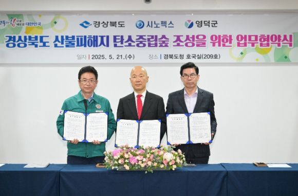 영덕군은 5월 21일 오후 2시 30분, 경북도청 회의실(209호)에서 경상북도 및 시노펙스와 함께 ‘영덕 산불피해지 탄소중립 숲 조성’을 위한 3자 간 업무협약(MOU)을 체결했다.이날 협약식에는 이철우 경북도지사, 김광열 영덕군수, 시노펙스 손경익 대표이사를 비롯한 관계자 10여 명이 참석했으며, 협약서 서명, 인사 말씀, 협약 내용 보고 등의 순서로 진행됐다.이번 협약으로 영덕군은 산불로 훼손된 지역 산림의 생태를 복원하고 지역사회 상생 모델을 구축하게 되며, 시노펙스는 ESG 경영 실천을 바탕으로 민간 주도의 탄소중립 실현에 노력하게 된다.이에 따라 시노펙스는 총 15억 원 규모의 민간 재원을 지원하고, 경상북도와 영덕군은 탄소중립 숲 조성 사업의 공동 기획, 실행, 사후관리에 협력한다.김광열 영덕군수는 “이번 협약으로 지자체와 기업이 힘을 합쳐 탄소중립을 실현하는 중요한 계기가 될 것”이라며, “산불로 훼손된 산림을 다시 푸르게 복원하고 지속 가능한 지역 발전을 위한 다양한 민관 협력 모델을 확대해 나가겠다”고 밝혔다.