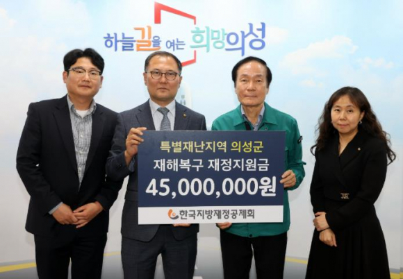 의성군은 지난 5월 16일 한국지방재정공제회로부터 특별재난지역 재해복구 재정지원금 4,500만원을 전달받았다고 밝혔다.이번 지원금은 한국지방재정공제회가 특별재난지역으로 지정된 지자체를 대상으로, 전년도 건물·시설물 재해복구공제회비의 30%를 재정 지원하는 제도에 따라 지급된 것이다.앞서 의성군은 지난 3월 발생한 대형산불로 총 28,853ha의 산림과 인근 시설에 피해를 입었으며, 이에 따라 정부로부터 특별재난지역으로 선포된 바 있다. 김주수 의성군수는 “산불로 큰 피해를 입은 지역에 실질적인 도움이 되는 재정지원을 해주신 한국지방재정공제회에 깊이 감사드린다”라며 “지원금은 피해 복구가 시급한 현장에 유용하게 활용하겠다”라고 전했다.