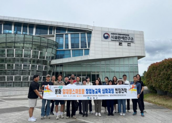 봉화군은 지난 21일 임대형 스마트팜 창업농 심화과정 교육생 25명을 대상으로 스마트팜 재배기술 습득과 스마트팩토리 설비 및 기기에 대한 견문을 넓히기 위해 현장견학을 실시했다.이번 견학은 기후 온난화와 농업인구 고령화 및 농가소득 불안정 등 급변하는 농업환경 속에서 스마트농업에 대한 이해와 현장 적용능력을 향상시키기 위한 목적으로 마련됐다.교육생들은 먼저 경남 함안에 소재한 국립원예특작과학원 시설원예연구소를 방문해 소속 농업연구사로부터 다겹보온 커튼, 수막시스템을 이용한 에너지 절감기술과 순환식 수경재배 시스템을 이용한 양분 재활용 친환경 재배기술을 배웠다.이어서 ‘2025년 스마트팜 코리아’ 박람회가 열리는 창원 컨벤션센터(CECO)로 자리를 옮겨 스마트팜 산업을 선도하는 국내외 기업들의 LED 식물생장등, 수직형 식물공장 등 다양한 스마트팩토리 설비와 기기를 관람했다.장영숙 농업기술과장은 “이론교육과 현장견학을 병행함으로써 창업농 심화과정 교육생들이 시설원예 에너지 절감기술과 순환식 수경재배 기술을 습득하는 소중한 기회가 됐다.”며 “군에서는 앞으로도 청년 농업인들의 스마트팜 역량강화를 위해 수준 높은 교육프로그램을 지속적으로 운영하겠다.”라고 말했다.