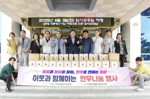 문경시 한우협회은 한우자조금관리위원회 주최, 전국한우협회 문경시지부에서 주관으로 5월 22일 한우사골곰탕 600개(3백만 원 상당)을 기부하는 전달식을 했다고 밝혔다.이번 기부는 경북 사회복지공동모금회를 통해 지정기탁 방식으로 이루어졌으며, 기부된 곰탕은 지역사회복지관을 통해 관내 독거노인들에게 전달될 예정이다.한우협회 문경시지부는 매년 3백만 원 상당의 곰탕을 기부하며 지역사회 나눔 활동에 앞장서고 있다. 이남식 지부장은 “지역 어르신들게 작게나마 따뜻한 마음을 전하고자 매년 기부를 이어오고 있다”며 “앞으로도 지역사회와 함께하는 협회가 되도록 노력하겠다”고 전했다.문경시 관계자는 “지속적인 나눔 실천에 감사드리며, 시에서도 따뜻한 마음이 잘 전달될 수 있도록 최선을 다하겠다”고 전했다.