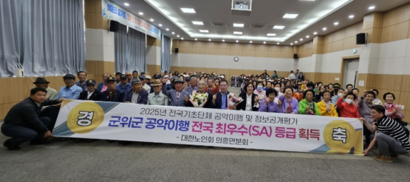 군위군이 한국매니페스토실천본부가 실시한 2025년 전국 기초단체장 공약이행 및 정보공개 평가에서 최고 등급인 SA등급을 받으며, 전국 최우수 자치단체로 선정됐다. 공약 이행률과 주민 소통, 정보공개 등 전 항목에서 고루 높은 평가를 받은 결과다. 이와 관련해 지난 27일 대한노인회 의흥면분회는 삼국유사 청춘대학 강의에 앞서 군위군의 성과를 축하하는 작은 퍼포먼스를 마련했다. 어르신들은 군의 성과를 함께 축하하며, 격려의 마음을 전했다. 김진열 군수는 “공약은 군민과의 약속이며, 이를 지켜가는 과정은 곧 신뢰 행정의 바탕”이라며 “이번 SA등급 선정은 군위군 전체의 성과이고, 군민과 함께 만들어낸 값진 결과”라고 말했다. 한편, 삼국유사 청춘대학은 올해로 25번째를 맞이한 군위군 대표 노인복지사업이다. 건강체조, 노래교실, 사주풀이, 음식과 건강 등 다양한 프로그램으로 운영되며, 어르신들의 배움과 소통의 장으로 꾸준한 사랑을 받고 있다.