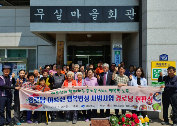 김천시는 지난 26일, 노인회 임원 및 노인회원 40여 명이 참석한 가운데 지좌동 무실경로당에서 『경로당 행복밥상 시범 경로당 현판식』을 열었다. 경로당 행복밥상 지원사업은 지역 어르신에게 주 5일 동안 1일 2식(중식, 석식)을 제공하는 사업으로 무실경로당이 시범 경로당으로 선정되어 5월부터 사업을 시작했다. 특히, 이 사업은 1인 노인가구가 지속적으로 증가하고 있는 상황에 식사 준비가 힘든 고령 및 취약 가구 어르신에게 식사를 제공함으로써 사회적 고립감을 해소하고 어르신들의 건강을 유지할 수 있다는 점에서 큰 의미가 있다. 김천시 관계자는 “성공적인 사업 추진을 위해 어르신들의 적극적인 참여를 부탁드리며, 특히 혼자 계시는 어르신이 경로당을 이용하면서 식사를 제때 해결하고 영양가 있는 음식을 섭취하셔서 건강에 도움이 됐으면 좋겠다.”라고 전했다. 한편 김천시에서는 노인 여가 복지 증진과 쾌적한 여가 환경 조성을 위해 매년 경로당에 운영비와 냉·난방비, 급식비, 정부양곡을 지원하고, 경로당 개보수 및 활성화 물품, 냉온수기 렌탈료 지원사업을 추진하고 있다. 또한, 경로당 행복선생님(37명) 사업을 통해 김천시 전체 경로당을 매주 1회 이상 방문하여 어르신들의 건강 증진과 취미·여가 활동을 위한 다양한 프로그램을 제공하는 등 어르신 복지 향상에 앞장서고 있다.