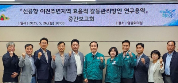 의성군은 26일 ‘신공항 이전주변지역 효율적 갈등관리 방안 연구용역’ 중간보고회를 개최했다.이번 보고회에는 의성군과 경북도 관계자, 공항분야 전문자문위원 등 20여 명이 참석해 연구용역 전반에 대한 검토와 함께 사업추진 단계별 예상 갈등에 대한 대응 방안 및 주민 지원에 관한 정책 제언을 논의하는 자문과정을 진행했다.군은 이번 용역을 통해 ▲이해관계자 심층인터뷰 및 사업단계별 갈등 요소 분석 ▲유사 사례 통한 주민갈등 대응방안 제시 ▲관련법 개정 및 자치입법 제정 등 제도적 기반 마련 ▲향후 갈등예상 및 관계기관별 대응방안 등 여러 정책제언을 신공항 이전사업과 관련한 갈등관리에 활용해 나갈 예정이다.김주수 의성군수는 “이번 보고회를 통해 제시된 다양한 의견과 정책제언을 면밀히 검토하고 보완하여 주민과 행정이 상생할 수 있는 실질적이고 효과적인 갈등관리 대책을 수립하겠다”라고 밝혔다.