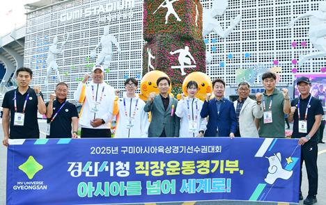 경산시는 오는 27일부터 31일까지 경북 구미시에서 개최되는 ˝2025년 구미아시아육상경기선수권대회˝에 7명의 선수단(선수 3, 지도자 4)이 출전한다고 밝혔다. 조현일 경산시장은 27일 구미시민운동장을 방문하여 경산시청 직장운동경기부 소속 출전 선수단을 직접 만나 격려했다.2025년 구미아시아육상경기선수권대회는 아시아 43개국 2,000여명의 선수들이 참가하는 대륙 최대 규모의 육상 대회로 ▲단거리, 중장거리 및 허들달리기, ▲도약 및 투척등 45개 종목에 치열한 경쟁이 펼쳐지며 아시아를 대표하는 육상인재들이 국제무대 진출을 준비하는 중요한 무대로 평가받고 있다.이러한 무대에 출전하는 경산시청 직장운동경기부 소속 선수들이 주목을 받고있다. 대회 첫날인 ▲5월 27일 경보 20km에 출전하는 주현명(27) 선수를 시작으로, ▲5월 28일 여자 1500m 및 5월 31일 여자 5000m에 출전하는 김유진(28) 선수는 중장거리 분야에서 ▲5월 30일 남자 원반던지기 종목에 출전하는 김일현(31) 선수는 필드 분야에서 각각 경쟁에 나선다. 이들은 뛰어난 기량을 바탕으로 각종 전국대회와 국제대회에서 성과를 거두고 있으며, 이번 대회를 통해 경산 엘리트 체육의 저력을 다시 한번 입증할 것으로 기대된다. 대회 첫날 27일 구미를 방문한 조현일 경산시장은 경산시청 직장 운동경기부 소속 선수단을 직접 만나 격려하며, “경산시를 대표하여 출전하는 여러분의 모습은 28만 시민 모두의 자긍심이자 감동이며, 여러분의 헌신과 노력은 경산 체육의 희망이자 대한민국 스포츠의 미래가 될 것”이라고 말했다.이어 “이번 대회를 통해 경산 체육이 아시아를 넘어 세계로 도약하는 실질적인 기반이 되기를 기대한다”며 “여러분이 흘린 땀과 쌓아온 실력이 결실을 맺을 수 있도록 흔들림 없이 최선을 다해 경기에 임해주길 바란다”고 덧붙였다.