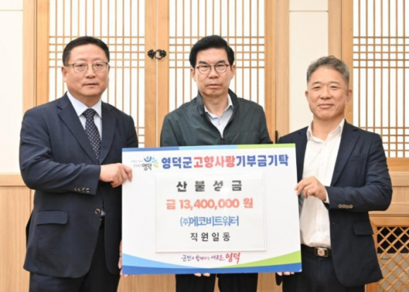 환경 관련 중견기업인 ㈜에코비트워터가 지난 28일 산불 피해지역인 영덕군을 방문해 총 3,340만 원의 성금과 기부금을 전달했다.에코비트워터는 영덕군의 산불 피해 복구를 위한 성금 2,000만 원과 함께 임직원들의 자발적인 참여로 고향사랑 산불 지정 기부금 1,340만 원을 마련한 것으로 알려졌다.기속 가능한 기술혁신과 미래 사회를 위한 환경가치를 추구하는 에코비트워터는 도시와 지방의 환경 불균형을 극복하고 지역사회와의 상생을 이루기 위해 다양한 사회활동을 펼치고 있다.김광열 영덕군수는 “이웃의 아픔에 공감하고 먼저 손을 내밀어 주신 따뜻한 마음에 깊이 감사한 마음”이라며, “기탁해 주신 성금이 다시 일어설 수 있다는 희망으로 이어지도록 소중히 사용하겠다”고 고마움을 전했다.