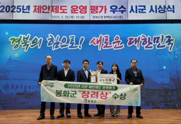 봉화군은 29일 경상북도가 주관한 ‘2025년(2024년 실적) 시군 제안제도 운영 평가’에서 장려상을 수상하며 12년 연속 우수기관으로 선정되는 쾌거를 이뤘다.이번 평가에서는 도내 22개 시군을 대상으로 지난 1년간의 제안제도 운영 실적을 종합적으로 심사해 국민 참여행정 실현에 기여한 우수 지자체를 선정했다. 봉화군은 2014년부터 한 해도 빠짐없이 우수기관 명단에 이름을 올리며 제안제도 운영의 선도적 역할을 인정받았다.지난해 국민 제안 공모전 ‘함께 꿈꾸는 봉화’와 공무원 제안 공모전 ‘함께 그리는 봉화’를 개최해 군정 혁신을 도모했으며, ‘싱크탱크(Think-tank) 톡! 톡!’을 운영해 지역 실정에 맞는 창의적인 아이디어를 발굴하고자 노력한 점에서 높은 평가를 받았다.특히 채택된 제안 중 ‘아동급식권 전자바우처 카드 도입’은 아동급식 가맹점 확대를 통해 이용자의 편의성을 크게 증진하고 사업의 효율성을 높여 주민들로부터 많은 호응을 얻고 있다.또한 ‘군 홈페이지 내 정자 탐방 관광 코스 추가’와 ‘반사경 설치 제안’ 등 주민들의 생활과 밀접한 소규모 제안들도 체계적으로 검토해 군정에 반영하는 등 적극적인 행정을 펼쳤다.박현국 봉화군수는 “국민과 공직자 여러분의 빛나는 아이디어가 봉화 발전을 이끄는 핵심 동력”이라며 “앞으로도 국민의 목소리에 귀 기울여 ‘더 나은 봉화’를 만들기 위해 최선을 다하겠다.”라고 전했다.