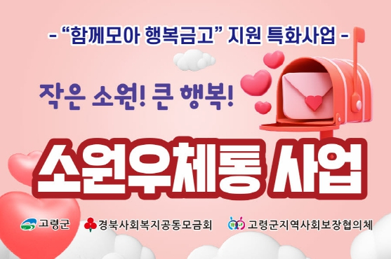 고령군지역사회보장협의체(공동위원장 이남철, 김종태)는 가정의 달을 맞아 특화사업인 ‘소원우체통’ 사업을 통해 지역 아동들의 소원을 들어주는 특별한 나눔을 실천했다. 이번 선물은 4월부터 5월까지 접수된 사연 중 가구 소득 및 사업 목적 등을 종합적으로 고려하여 총 8명의 아동이 선정됐으며, 신청한 물품은 5월 말까지 모두 전달될 예정이다. ‘소원우체통’ 사업은 경제적 어려움 등 다양한 사정으로 인해 평소 갖고 싶어도 갖지 못했던 물품을 아동들이 손편지로 신청하면, 회의를 통해 선정된 아동에게 물품을 직접 전달하는 감동적인 복지 프로그램이다. 산타클로스처럼 아이들의 진심 어린 소원을 이루어 주는 따뜻한 복지사업이다. 특히, 이 사업은 경북사회복지공동모금회의 “함께모아 행복금고”의 지원을 받아 추진되고 있으며, “함께모아 행복금고”는 지역주민들이 일상 속에서 모은 정성으로 조성된 연합모금 사업이라는 점에서 그 의미가 더욱 크다. 지역주민들의 자발적인 참여와 나눔이 모여 아이들의 소망을 이루는 소원우체통 사업은 지역사회가 함께 만들어 가는 복지 실천의 모범사례라고 할 수 있다. 물품을 전달받은 한 아동은 “친구들이 가지고 있어 부러웠던 장난감을 이제는 나도 가질 수 있어서 너무 행복해요. 제 편지를 진심으로 읽어주셔서 감사해요”라며 기쁨과 감사의 마음을 전했다. 김종태 위원장은 “작은 편지 한 장에서 시작된 아이들의 간절한 소망을 이뤄주는 과정은 지역사회가 함께 만들어 가는 따뜻한 변화의 출발점”이라며, “앞으로도 더 많은 아동이 꿈을 꾸고 응원받을 수 있도록 지역민들의 관심과 참여를 부탁드린다”고 전했다. 지역사회보장협의체는 앞으로도 ‘소원우체통’ 사업을 비롯하여 다양한 맞춤형 통합돌봄 프로그램을 통해 복지 사각지대를 줄이고, 모두가 행복한 지역사회를 만들기 위한 노력을 이어나갈 계획이다. “소원우체통” 접수는 군청 주민복지과 및 각 읍·면사무소에 설치된 소원우체통을 통해 참여할 수 있으며, 비치된 접수함 또는 우편, 팩스 등 다양한 방법으로 접수가 가능하며, 문의사항은 지역사회보장협의체, 주민복지과 또는 읍면 맞춤형복지팀으로 문의하면 된다.