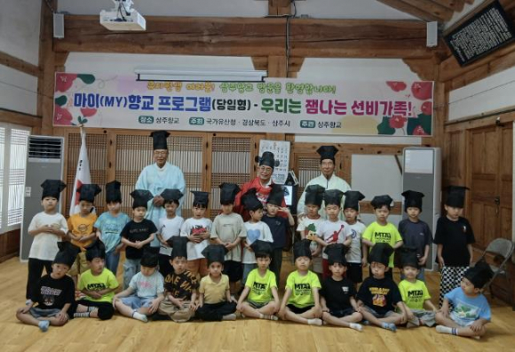 천년의 대설위 상주향교에서는 상주시 소재 한마음유치원(남성동 성당 운영) 어린이 48명을 대상으로 전통선비문화체험 행사를 개최했다.이 행사는 2025년도 국가유산청의 ‘우리고장 국가유산 활용 공모사업-마이(my) 향교프로그램’의 일환으로 실시했는데, 상주향교의 교육기능을 되살리고 지역 어린이들에게 전통예절과 유교문화를 알리기 위해 기획됐다.이날 프로그램에서는 대성전 참배에 이어 명륜당으로 내려와 남자 어린이들에게는 유건을 씌우고, 여자 어린이들에게는 족도리를 씌어 주어 한결 선비 분위기가 어우러졌다.이어, 김명희 전교의 특별 강의를 비롯하여 인사예절, 공수법과 큰절(세배)하는 실습을 남과 여의 분리 체험을 단체 교육에 이어 각 조를 편성하여 체험토록 했다. 어린이들이 절하는 모습은 선비정신의 뿌리를 자연스럽게 익히는 귀한 시간이 되기도 했다.마지막으로 서예실에서는 김명희 전교가 서예 시범을 보여주기도 했는데, ‘한마음유치원, 상주향교’라고 글씨를 써 주기도 하는 등 어린이들에게 다채로운 프로그램으로 진행됐다.한편, 김명희 전교는, “조상들의 예절문화를 놀이처럼 체험하며 몸과 마음을 다스리는 시간이 되기를 바란다”면서, “향후에도 다양한 연령층을 대상으로 향교의 전통교육 기능을 확대해 나갈 계획”이라고 했다.상주향교는 앞으로도 지역사회와 함께하는 교육 프로그램을 지속 운영하며, 유교적 전통문화의 현대적 계승과 확산을 위해 힘쓸 예정이다.