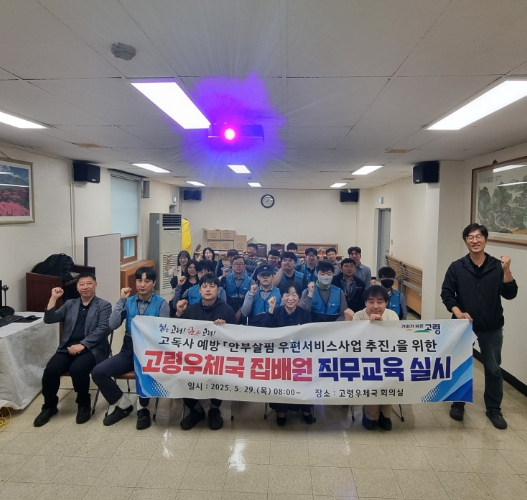 고령군은 5월 29일 오전 8시 고령우체국 회의실에서 우체국 ‘집배원’ 19명을 대상으로 『안부살핌 우편서비스 사업』추진을 위한 개인정보보호 등 직무 교육을 실시했다.안부살핌 우편서비스는 집배원이 고독사 위험가구에 복지서비스 안내문 및 생필품세트를 주기적으로 배송하면서 파악한 위기정보를 신속하게 군에 전달하여 대상자에게 필요한 맞춤형 서비스를 연계하는 사업이다.우체국은 대상가구의 안부확인 후 체크리스트를 작성하여 군청으로 회신하고, 고령군은 위기가구에 적절한 서비스를 연계하고 읍면 맞춤형복지팀 및 군청 희망복지지원단을 활용하여 사후관리 할 계획이다.군 관계자는 “1인가구가 늘어나고 고독사 문제가 사회적으로 점점 이슈화되고 있는 만큼 이웃의 소중한 생명을 지킨다는 사명감을 가지고 열심히 업무에 임해주시길 바란다”고 전했다.