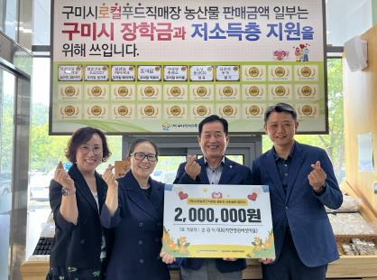 구미먹거리통합지원센터와 구미시사회공헌지원센터는 5월 29일 구미시로컬푸드직매장 금오산점에서 로컬푸드직매장 출하자 사회공헌 협약식을 개최했다.이번 협약식은 로컬푸드를 통해 형성된 지역 먹거리 순환체계를 지역사회 공익활동과 연결하고, 출하농가의 사회적 책임을 실현하기 위한 취지로 마련됐다.그 첫 번째 주인공은, 로컬푸드직매장 출하자인‘착한영광버섯마을’의 손광식 대표가 지역 장학금 조성을 위해 200만원을 기부했다.손광식 대표(구미시로컬푸드직매장 출하자협의회장)는 “그동안 지역 소비자들의 큰 사랑 덕분에 농업을 지속 할 수 있었고, 이에 보답하고자 기부를 결심했으며, 앞으로도 시민들에게 사랑받는 착한 농업을 실천하겠다”고 소감을 밝혔다.김장호 구미시장은 “지역에서 생산된 먹거리가 지역을 돕는 순환구조의 출발점이 됐으며, 출하농가들이 자발적으로 사회공헌에 동참하고, 지역사회와 함께 성장하는 기반을 마련하는 계기가 됐다”고 했다.이번 협약을 시작으로, 출하농가의 기부릴레이 의사가 이어지고 있으며 구미시로컬푸드직매장과 구미시사회공헌지원센터는 출하농가와 함께 성과보고회 및 우수 출하농가 시상, 지역사회 공익사업 공동 추진 등 지속 가능한 사회공헌 체계를 만들어 갈 예정이다.로컬푸드의 가치가 단순한 먹거리 소비를 넘어, 지역 공동체 회복과 나눔의 문화 확산으로 이어지고 있어 그 의미가 크다.