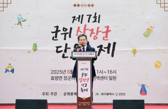 1300여 년의 역사와 전통을 자랑하는 대구시 군위군의 대표 향토문화축제인 “제7회 군위 삼장군 단오축제”가 지난 5월 31일(음력 5월 5일) 효령면 고지바위권역 다목적센터 일원에서 성황리에 개최됐다. 이번 축제에는 1,500여 명의 방문객이 참여해 다양한 프로그램을 즐기며 단오와 전통의 의미를 되새기고, 세대가 어우러지는 뜻깊은 시간을 보냈다. 축제는 지역 예술 동아리의 공연과 트로트 가수의 식전 무대로 흥겨운 분위기를 끌어올린 뒤, 기념식과 ‘군위의 1300년’을 주제로 한 공연으로 이어지며 군위의 역사적 배경과 군민의 화합, 안녕을 감동적으로 표현해 큰 호응을 얻었다. 관람객 참여 프로그램인 “삼장군을 찾아라!”에서는 제기차기, 팔씨름, OX 퀴즈를 통해 남성·여성·어린이 각 1명씩 총 3명이 오늘의 삼장군으로 선발되며 현장을 더욱 뜨겁게 달궜다. 점심 시간에는 정성껏 준비한 무료 비빔밥이 제공되어, 도시에서 온 관람객들에게 군위의 따뜻한 정과 시골 인심을 전하며 훈훈한 분위기를 더했다. 행사장 곳곳에서는 민속놀이 체험, 모내기 체험, 수리취떡 만들기, 창포 샴푸바 만들기 등 전통과 실생활이 어우러진 다양한 체험 부스가 상시 운영되며 어른들에겐 어린 시절의 향수를, 아이들에게는 신선한 즐거움을 선물했다. 또한, 축제장을 돌며 즐기는 ‘삼장군 스탬프 투어’에는 많은 관람객이 참여해 체험부스와 포토존은 물론 제동서원 향사 현장까지 순회하며 자연스럽게 군위의 역사와 문화를 접하는 의미있는 시간을 가졌다. 한편, 인근 제동서원에서는 가락종친회 문중 주관으로 김유신, 소정방, 이무 장군의 향사가 엄숙히 봉행되어, 전통의 격조를 더하고 군위의 역사적 정체성을 되새기는 의미 있는 시간도 마련됐다. 김진열 군위군수는 “이번 단오축제는 군위의 찬란한 역사와 전통을 되새기며, 군민과 방문객이 함께 어우러지는 따뜻한 화합의 장”이라며, “특히 군위군의 군부대 이전이 확정된 뜻깊은 시점에 열린 축제인 만큼, 새로운 도약과 지역 발전의 희망을 함께 나누는 계기가 되기를 바란다”고 말했다.