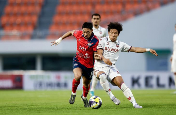 김천상무가 아쉬운 무승부를 기록했다.김천상무프로축구단이 6월 1일 일요일 19시, 김천종합운동장에서 열린 수원FC와의 ‘하나은행 K리그1 2025’ 17R 홈경기에서 1대 1로 무승부를 거두었다.김천상무는 4-4-2 포메이션으로 경기를 시작했다. 골키퍼 장갑은 김동헌이 꼈다. 백포는 조현택, 박찬용, 박승욱, 김강산이 구축했다. 중원은 서민우와 이승원, 양쪽 날개에는 김승섭과 이동준이 포진했다. 최전방에는 유강현과 이동경이 골문을 노렸다. ‘전역 기념식 이벤트’, 끝까지 호흡 맞춘 8기 선수들김천상무는 8기 선수들의 전역 기념식 행사로 홈경기 이벤트를 준비했다. 경기장에서도 전역 기념식을 앞둔 김동헌, 박승욱, 서민우, 조현택이 선발 출전하며 끝까지 팬과 함께했다.이와 함께 김천상무는 초반부터 공격적으로 경기에 나섰다. 전반 11분, 코너킥에서 이동경이 올린 크로스가 김승섭의 슈팅까지 이어졌다. 이어 5분 뒤 조현택의 크로스를 이동준이 슈팅으로 마무리하며 계속해서 골문을 두드렸다.김천상무는 공격을 계속 이어갔다. 전반 22분, 이동준의 결정적인 크로스가 유강현의 발끝에 닿지 않으며 아쉬움을 삼켰다. 전반 정규시간이 다 지나고 추가시간에 얻은 코너킥에서는 이동경의 크로스를 유강현이 헤더로 연결했지만, 골대 위로 살짝 벗어나며 전반을 0대 0으로 마쳤다. 이동경 4호 도움-박상혁 6호골 ▶ 막판 아쉬운 동점골 허용으로 무승부김천상무는 후반 시작과 동시에 박상혁을 교체 투입하며 승부수를 던졌다. 후반에 들어서도 김천상무는 공격의 고삐를 당겼다. 후반 47분, 이동준이 상대 수비를 흔들고 왼발슛으로 골문을 위협했다. 이동준으로부터 공격이 계속됐다. 후반 55분, 폭발적인 스피드로 수원의 측면을 붕괴하고 크로스를 올리며 위협적인 장면을 만들었다. 이어 1분 뒤 공격에 가담한 조현택도 한 차례 슈팅으로 수원의 골문을 노렸다. 계속해서 후반 61분, 김경준이 그라운드를 밟았다. 후반 중반에 들어서 양 팀의 경기는 더욱 뜨거워졌다. 빠른 속도로 공방을 주고받으며 선제골을 향한 의지를 불태웠다. 후반 77분, 기다리던 첫 골이 터졌다. 수원의 진영에서 얻은 프리킥을 이동경이 올렸고, 쇄도하던 박상혁이 다리를 뻗어 밀어 넣었다. 이동경의 시즌 4호 도움이자, 박상혁의 6호 골이었다. 그러나 기쁨이 오래가지 못했다. 후반 89분, 수원의 역습에 동점을 허용하며 끝내 1대 1 무승부로 승점 1점에 만족해야 했다.경기 종료 후 기자회견에서 정정용 감독은 “끝까지 열정적으로 뛰어준 선수들과 응원해 주신 팬 여러분께 감사하다. 좋은 결과를 드리지 못한 점은 죄송하다. 경기 막바지 집중력이 저하되는 부분은 체력적인 문제도 있다고 생각한다. A매치 휴식기 동안 잘 준비하겠다. 더불어 (전역과 입대로) 새로운 변화가 시작되는데, 감독부터 잘 준비해서 팀을 잘 만들도록 하겠다.”고 총평했다. 이어 “특별히 오늘 경기 이후로 원소속팀에 돌아가는 8기 선수들에게 고맙다는 말 전하고 싶고, 앞으로도 부상 없이 행복하게 축구하기를 응원하겠다.”라고 말하며 전역 선수들에게 인사를 전했다.한편, 김천상무는 A매치 휴식기 이후 6월 14일 포항스틸러스와 ‘하나은행 K리그1 2025’ 18R 홈경기를 치른다.