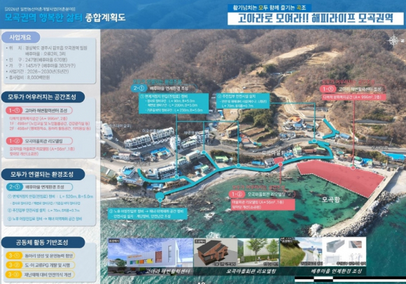 경상북도는 해양수산부가 추진하는 ‘2026년도 일반농산어촌개발사업’ 공모에 도내 2개소, 경주 모곡권역(오류 2 ~ 4리)과 영덕 경정권역(경정 1,3리)이 최종 선정되어 2026년부터 5년간 국비 97억원을 지원받는다.일반농산어촌개발사업은 해양수산부에서 어촌주민의 소득과 기초생활 수준을 높이고 어촌의 계획적인 개발을 통한 어촌마을의 특화 발전 도모 및 정주 여건을 개선하기 위해 지역민이 직접 참여하는 사업으로, 올해 1월부터 공모를 진행했고 4월 도 평가를 거쳐 5월 해양수산부 현장과 종합평가를 통해 2026년 신규 사업지를 최종 선정했다.이번에 선정된 ‘경주 모곡권역’은 ▴해변활력센터 ▴마을회관 리모델링 ▴배후마을 연계 환경정비 등 총사업비 63억원(국비44, 시비19)을, ‘영덕 경정권역’은 ▴워라벨센터 ▴안전한 마을회관 조성 ▴삶터 환경 개선 ▴SAFETY 해안 로드 조성 등 총사업비 76억원(국비 53, 군비 23)을 각각 투자해 생활 SOC 시설을 확충하는 등 낙후된 어촌마을의 정주여건을 개선할 계획이다.특히 최근 초대형 산불로 인해 삶의 터전을 잃은 영덕 경정권역은 기초생활 기반의 정주 여건 개선이 시급한 상황에서 이번 사업을 통해 훼손된 생활 SOC와 마을 경관을 정비해 주민의 조속한 일상 회복과 삶터 조성에 도움이 될 것으로 기대된다. 정상원 경상북도 해양수산국장은 “이번 공모사업을 통해 노후화된 기반 시설 등 열악한 어촌마을의 생활환경을 개선하고, 주민 주도형 사업으로 공동체 기반 조성 및 활력 넘치는 어촌 정주 여건 만들기에 앞장서 나가겠다”고 말했다.