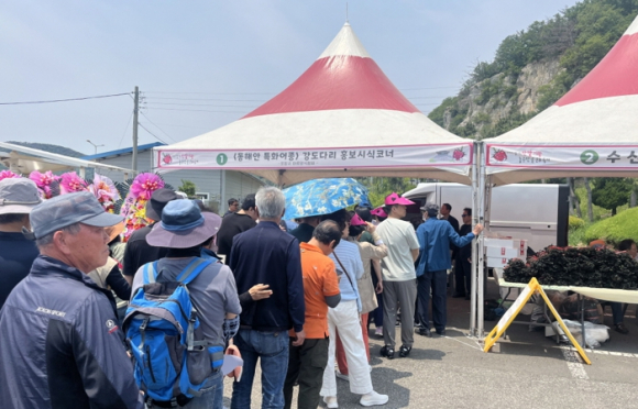 포항시는 최근 개최된 제15회 ‘장기 산딸기랑 농수산물 문화축제’에서 강도다리 포항물회 소비촉진 행사를 진행해 방문객들로부터 큰 호응을 얻었다.이번 행사는 동해안 양식 특화 어종인 강도다리를 포항의 대표 먹거리인 물회와 접목해 보다 많은 소비자에게 알리고자 마련됐다.본격적인 더위가 시작되는 시기를 앞두고 시원한 강도다리 물회 시식 행사는 축제를 찾은 관광객들에게 큰 인기를 끌며 포항 수산물의 우수성을 홍보하는 계기가 됐다.질병에 강하고 육질이 단단해 식감이 뛰어난 고급 어종으로 소비자들의 꾸준한 인기를 얻고 있는 강도다리는 생산량이 빠르게 증가하며 현재 경북 동해안 어류 양식의 70% 이상을 차지하는 대표 특산 양식어종으로 자리매김하고 있다.정철영 수산정책과장은 “관광객들의 뜨거운 반응에 감사드리며, 해수온 상승과 경기침체 등으로 어려움을 겪고 있는 지역 수산업계를 위해 지속적인 홍보 행사 추진과 엄격한 품질 인증 제도 운영으로 신뢰할 수 있는 수산물 유통 기반을 조성해 나가겠다”고 말했다.한편 포항시는 앞으로도 수산물 소비 촉진과 어업인 소득 안정화를 위한 다양한 시책을 지속적으로 펼쳐나갈 계획이다.