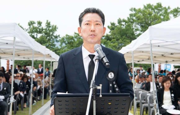 구미시는 6월 6일 오전 9시 57분, 선산읍 비봉산에 위치한 선산 충혼탑에서 ‘제70회 현충일 추념식’을 엄숙히 거행했다.순국선열과 호국영령의 숭고한 희생정신을 되새기고 추모하기 위해 열린 추념식에는 김장호 구미시장을 비롯한 구자근, 강명구 국회의원,보훈단체장, 박교상 의장, 기관ㆍ단체장, 도ㆍ시의원, 국가유공자와 유족 등 800여명이 참석했다. 국민의례를 시작으로, 6일 오전 10시 정각 전국동시 사이렌 소리와 함께 순국선열 및 호국영령에 대한 추모 묵념, 조총 발사, 헌화 및 분향, 김장호 시장의 추념사, 추모헌시 낭송, 현충일 노래 제창 등의 순으로 진행됐다.특히 구미전자공업고등학교 악대부와 구미시새마을여성합창단이 함께 참여하여 행사에 경건함을 더했으며, 참전유공자의 손녀가 유족 대표로 추모 헌시를 낭독해 국가와 민족을 위해 희생ㆍ헌신하신 순국선열과 호국영령들의 넋을 기렸다.김장호 구미시장은 추념사를 통해 “조국을 지켜내신 영웅들의 고귀한 희생 덕분에 오늘의 번영이 있는 것”이라며, ˝그 숭고한 뜻을 받들어 구미를 더욱 발전시키는 것이 우리의 거룩한 책무임을 마음 깊이 새겨 구미 재창조와 지속 가능한 미래를 위해 시정의 모든 역량을 모으겠다”고 했다.추념식이 열린 선산 충혼탑(선산읍 동부리 산1-3)에는 현재 1,570위의 위패가 봉안되어 있다. 이곳은 1955년 10월, 이승만 초대 대통령의 휘호를 받아 건립됐으며, 1979년에 조성된 구미 충혼탑(임수동 소재)과 2001년 통합됐다.시는 2023년 목재 위패를 석재로 교체하고 봉안실을 리모델링하는 등 지속적인 관리에 나서며, 참배객들에게 더 나은 환경을 제공하고 있다. 구미시는 앞으로도 순국선열과 호국영령의 뜻을 기리고, 보훈가족에 대한 예우를 강화해 나갈 방침이다.