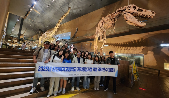 김천여자고등학교(교장 정하경)는 6월 4일부터 7일까지 일본 규슈 지역에서 과학중점과정 학생연수를 실시했다. 2학년 과학중점과정 학생 15명이 참가하여 일본의 다양한 과학 시설을 탐방하면서, 과학적 시야와 사고의 폭을 넓혔다. 김천여고는 2010년부터 교육부 지정 과학중점학교를 운영하여 왔고, 2022년부터는 경상북도교육청 지정 체제로 전환하여 16년 동안 과학중점과정을 운영하고 있다. 그동안 과학체험활동은 국내 중심으로 운영했으나, 올해는 처음으로 국외연수를 계획하여 운영하게 됐다. 학생들은 3박 4일 동안 기타규슈 자연사박물관, 후쿠오카 과학관, 인공해변, 마린월드, 화산지구 등 다양한 과학 관련 시설을 탐방했고, 고쿠라 성, 오이타 레트로 지구, 유후인 거리, 텐만궁 등 일본문화도 체험했다. 특히 일본문리대학교 항공우주공학과 및 정보미디어학과를 탐방하며 교수 및 학생과 소통하는 소중한 시간을 가졌다. 학생들은 연수 시작 전 화산, 에너지, 해양, 건축, 역사문화 등의 탐구 주제를 설정하여 참여했고, 모든 탐방지에서 열성적이고 깊이있는 체험활동을 진행했다. 연수 후속 활동으로 학생들은 모둠별 주제탐구활동을 심화시켜 학술제에서 발표할 예정이다. 프로그램에 참가한 학생들은 “생명과학 및 지구과학 수업시간에 배운 내용을 확인할 수 있어 뜻 깊었다.”고 소감을 밝혔다. 정하경 교장은 “과학중점과정 학생들에게 좋은 경험을 제공할 수 있어서 뜻깊었고, 학생들의 우수한 태도에 감동받았다. 앞으로도 여건을 조성하여 이와 같은 프로그램이 지속적으로 운영되도록 노력하겠다.”고 소감을 전했다.