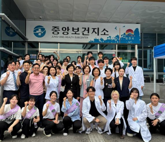 김천시는 제80회 구강보건의 날을 기념해 6월 10일 오후 1시부터 중앙보건지소 전정에서 지역 주민 대상으로 구강건강의 중요성과 소중함을 알리고자 “80년과 함께 구강건강, 100세 시대의 동반자”라는 주제로 행사를 실시했다. ‘구강보건의 날’은 구강건강에 대한 사회적 관심을 높이기 위해 제정된 법정기념일로, 첫 영구치 어금니가 나오는 시기인 6세의 ‘6’과 어금니(臼齒)의 ‘구’자를 숫자화해 6월 9일로 지정됐으며, 이 영구치를 소중하게 관리하여, 건강하고 행복한 삶을 누리자는 의미를 담고 있다. 이번 행사에서는 입속 세균관찰을 할 수 있는 큐스캔을 활용한 치면세균막 검사 및 구강검사, 올바른 구강 관리법 교육을 진행했다. 또한, 치아 상식에 대한 OX 퀴즈와 행운의 룰렛을 통해 경품을 제공하여 색다른 재미와 즐거움을 선사했으며, 김천대학교(치과위생학과, 치기공학과), 대한구강보건협회, 김천치과의사회 등과 연계하여 다양한 볼거리를 제공했다. 이 밖에도 만성병 관리를 위한 자기 혈관 숫자 알기, 한의약건강증진사업(혈관 나이 측정), 코로나 재유행 대응 및 예방 수칙 안내, 마약 예방 캠페인 등 다양한 건강 서비스를 제공했다. 신숙희 중앙보건지소장은 “치아 건강의 소중함을 인지하고, 올바른 구강 관리 습관을 형성하는 계기가 되길 바라며, 앞으로도 구강건강을 위해 양질의 구강 서비스를 제공할 수 있도록 최선을 다하겠다.”라고 말했다.