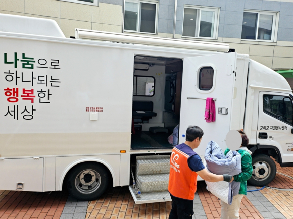 (사)군위군자원봉사센터(센터장 김정애)는 최근 산불로 큰 피해를 입은 영덕군 주민들을 위해 4월 18일부터 22일까지 5일간 이동세탁차량을 지원하여 온정을 나누었으며, 이번 지원을 통해 총 64가구에 따뜻한 지원의 손길을 전했다.군위군자원봉사센터는 이번 산불 피해로 일상생활에 큰 불편을 겪고 있는 피해 주민들이 깨끗이 세탁된 의류와 위생적인 환경을 유지할 수 있도록 이재민 임시거처인 영덕군 국립청소년해양센터에 이동세탁차량이 지원되었고, 자원봉사자들은 거동이 불편한 분들을 대신하여 세탁물 수거와 전달을 맡아 도움에 정성을 다했다. 김정애 군위군자원봉사센터장은‘작은 도움이지만 피해 주민들에게 따뜻한 위로가 되었기를 바라며 앞으로도 다양한 자원봉사 활동을 통해 지역 사회에 따뜻한 나눔을 실천해 나가겠다’고 전하였고,김진열 군위군수는 ˝갑작스러운 재난으로 어려움을 겪고 계신 영덕군민들에게 깊은 위로의 말씀을 전한다˝며, ˝군위군자원봉사센터의 이동세탁차량지원은 어려움을 함께 나누고 극복하고자 하는 군위군민들의 따뜻한 마음을 보여주는 것으로, 앞으로도 피해주민들이 하루빨리 일상으로 돌아갈 수 있도록 최선을 다해 돕겠다˝고 말했다.