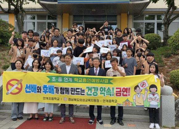 경상북도의성교육지원청은 6월 13일 안계중학교 체육관에서 안계초등학교 6학년과 안계중학교 전교생이 참여하는 `선배와 후배가 함께 만드는 건강 약속! 금연!` 캠프를 개최했다. 이번 캠프는 청소년 흡연 시작 연령이 낮아지는 현실을 반영해 초·중학생이 함께 참여하도록 기획된 이번 행사는 ‘초·중 공동 금연 선포식’과 오케스트라 축하공연으로 문을 열어 학생들의 금연 의지를 북돋웠다. 이어 금연 골든벨, 마술 공연, 그리고 ▲사제동행 미션 ▲마인드맵 한 줄 쓰기 ▲던지기 볼게임 ▲OX 팩트체크 ▲담배 거절 역할극 등 다섯 가지 체험 부스를 운영해 금연 실천 의지를 강화하고 또래 지지 문화를 확산시키는 효과가 기대된다. 이우식 교육장은 “흡연예방 교육은 정보 제공에 그치지 않고, 학생 스스로 금연을 약속하고 실천할 수 있도록 돕는 과정”이라며 “선배와 후배가 손잡고 금연에 동참하는 이번 행사가 학생들의 건강한 성장과 지역 사회 금연 문화 확산에 밑거름이 되길 바란다”고 밝혔다.