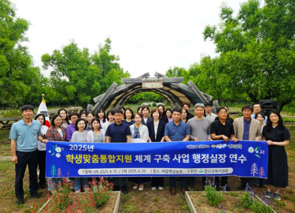 경상북도경산교육지원청은 바람햇살농장에서 관내 초등학교 행정실장 및 교육지원청 관계자 등 40여 명이 참석한 가운데 ‘학생맞춤통합지원 체계 구축 강사 요원 연수’를 실시했다. ‘학생맞춤통합지원 체계 구축’은 모든 학생이 개인의 능력과 특성에 맞는 교육을 받을 수 있도록, 학생이 겪는 다양한 어려움을 학교와 교육청, 지역사회가 함께 해결해 나가며 학생의 성장을 지원하는 시스템이다. 이번 연수는 2026년 3월 1일부터 전면 시행되는 ‘학생맞춤통합지원법’에 대한 이해를 높이고, 학생맞춤통합지원 체계의 안정적인 운영 기반을 구축하기 위해 마련됐다. 경산교육지원청은 초등학교 행정실장 연수에 이어 다가오는 6월 20일에도 중, 고, 특수, 각종학교 행정실장을 대상으로 연수를 진행할 예정이다. 경산교육지원청 박경화 교육장은“앞으로 학생맞춤통합지원 체계가 학교 현장에 안정적으로 정착될 수 있도록 적극적으로 지원해 나가겠다”라고 말했다.