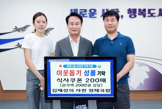 사천시는 김재성의 사천 형제국밥(대표 김재성)에서 여름방학 동안 결식 우려가 있는 아동들을 위해 식사 쿠폰(환가액 200만 원 상당)을 사천시에 기탁했다고 16일 밝혔다. 이번 식사 쿠폰 기부는 방학 중 끼니 해결에 어려움을 겪는 아동들이 지역 사회에서 따뜻한 식사를 제공받을 수 있도록 하기 위한 것으로, 한부모가정, 소년·소녀가장세대 등 복지 사각지대에 있는 꼭 필요한 저소득 아동 가정에 쿠폰을 배포할 예정이다.김재성 대표는 ˝작은 정성이지만 아이들이 배고프지 않게 방학을 보낼 수 있기를 바란다˝며 ˝앞으로도 지역사회에 도움을 줄 수 있는 일에 꾸준히 동참하고 싶다˝고 말했다.김 대표는 이번 기부 외에도 지난 2023년 사천시 인재육성장학회에 장학금 200만 원을 기탁 하였으며, 사천 성남두레복지원 연말 행사 시 어르신들을 위한 식사를 제공하는 등 지역사회를 위한 다양한 나눔 활동을 실천해 오고 있다.형제 국밥은 ˝따뜻한 국밥 한 그릇˝처럼 지역 주민들에게 정성과 진심이 담긴 나눔의 따뜻한 마음을 전하고 있다.박동식 시장은 ˝지속적인 지역 나눔 실천에 깊은 감사를 전하며, 김재성 대표와 같은 지역의 숨은 후원자들이 있기에 사천시가 더욱 따뜻한 도시가 될 수 있다˝며 이러한 온정이 널리 확산 되기를 바란다˝고 밝혔다.