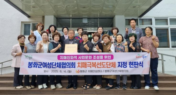 봉화군 보건소 치매안심센터는 지난 16일 봉화군여성단체협의회를 치매극복 선도단체로 신규 지정하고 현판식을 개최했다.치매극복 선도단체는 단체 구성원 모두가 치매환자와 가족을 이해하기 위한 치매파트너 교육을 받고 단체의 인프라와 재능을 활용해 치매 극복 활동 및 친화적 사회 조성에 적극 동참하는 단체를 의미한다.이번 치매극복 선도단체 지정에 따라 봉화군여성단체협의회 회원모두 치매파트너 교육을 이수하고 치매 파트너로서 지역주민들의 가장 가까운 곳에서 치매환자와 가족이 안심하고 생활할 수 있는 치매 친화적 사회문화 조성을 위한 치매극복 캠페인 및 치매인식개선 홍보 등 치매 사각지대 해소를 위해 적극적으로 활동할 예정이다. 배재정 봉화군치매안심센터장은 “점진적으로 치매극복선도단체를 지정·운영함으로써 치매환자와 가족들뿐 아니라 군민 모두가 치매에 관심을 가지고 편견 없는 시선으로 치매를 이해할 수 있는 환경을 조성해 나가겠다.”라고 전했다.