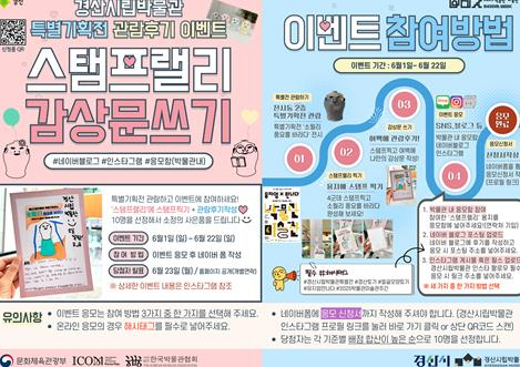 경산시 경산시립박물관은 `뮤지엄×만나다` 공모사업에 선정되어, 특별기획전 `소월리, 풍요를 바라다`와 연계한 관람후기 이벤트를 22일까지 진행한다.`뮤지엄×만나다`는 문화체육관광부와 ICOM KOREA(국제박물관협의회 한국위원회)가 주최하고, (사)한국박물관협회가 주관하는 프로그램으로, 박물관·미술관의 우수한 소장품과 숨겨진 이야기를 조명하여, 지역문화 활성화를 도모하고자 기획된 프로그램이다. 올해 주제는 `최초, 그리고 시작`으로, 전국 50개 박물관·미술관이 선정됐다.경산시립박물관은 경산시 와촌면 소월리유적에서 출토된 `얼굴모양토기`가 선정됐으며, 이번 이벤트는 `얼굴모양토기`를 주제로 한 특별기획전 `소월리, 풍요를 바라다`와 연계하여 마련된 관람후기 이벤트로, 박물관을 방문한 관람객 누구나 참여할 수 있다.참여방법은, 박물관에 직접 방문하여 전시 체험활동인 ‘스탬프 랠리’를 완료한 후 ▲인스타그램, ▲네이버 블로그, ▲박물관 내 응모함 중 한가지 방법을 선택해 참여할 수 있으며, 이후 네이버 폼을 통해 응모신청서를 작성하면 이벤트 참여가 완료된다.이벤트 선정은 창의성, 거리, 참여도, 주제 적합성을 기준으로 심사하여 총10명을 선정하며, 선정자에게는 경산시립박물관 `얼굴모양토기`를 활용한 마그넷을 기념품으로 증정할 예정이다.송정갑 관장은 “전시를 관람하고 체험하며 느낀점을 표현하는 이번 이벤트를 통해, 박물관이 지역민은 물론 다양한 세대와 지역의 관람객들이 함께 소통하는 열린 문화공간이 되기 바라며, 이번 `뮤지엄×만나다`사업에도 활력을 불어넣기를 바란다”고 밝혔다.이번 이벤트는 6월 22일까지 진행되며, 당첨자 발표는 6월 25일 경산시립박물관 홈페이지 및 SNS를 통해 공지될 예정이다.