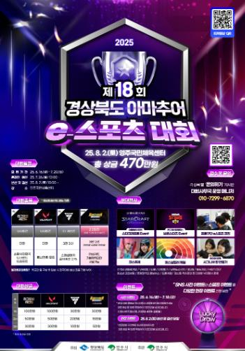 영주시는 전국 아마추어 게이머들이 참여하는 ‘2025 제18회 경북 아마추어 e스포츠대회’를 오는 8월 2일 영주국민체육센터에서 개최한다고 밝혔다.이번 대회는 경상북도와 영주시가 공동 주최하고, 영주시가 주관한다. 아마추어 게이머들의 실력을 겨루는 대표 무대인 ‘경상북도 아마추어 e스포츠대회’는 올해로 18회째를 맞는 지역 대표 e스포츠 축제로, 올해 영주에서는 더욱 다채롭고 풍성한 본선 무대를 선보일 예정이다.이번 대회는 총 4개 종목으로 구성된다. PC 게임 부문에서는 △리그 오브 레전드(5:5 팀전) △발로란트(5:5 팀전) △FC온라인(1:1 개인전)이 진행되며, 모바일 게임 부문은 △카트라이더 러쉬플러스(2:2 팀전, 8~12세 아동과 보호자 팀 구성)으로 운영된다. 특히 카트라이더 종목은 가족 단위 참가가 가능해 세대 간 소통과 참여가 기대되는 이색 구성으로 주목받고 있다.본선은 8월 2일 하루 동안 영주국민체육센터에서 오프라인으로 진행되며, 시민 누구나 자유롭게 현장을 방문해 경기를 관람할 수 있다. 당일에는 경기 외에도 다양한 부대행사와 체험 프로그램이 함께 마련된다. 3040세대를 위한 스타크래프트 이벤트 매치와 어린이를 위한 브롤스타즈 체험전, 그리고 VR 체험, 퍼스널컬러 진단, MBTI 및 타로 상담, 드론축구, 추억의 오락실, 코스프레 포토존 등 가족과 친구들이 함께 즐길 수 있는 다양한 콘텐츠로 꾸며질 예정이다.또한 SNS 인증샷 이벤트와 스탬프 투어 등 관람객 참여형 프로그램과 함께 다양한 경품도 마련되어 있어, 현장을 찾는 시민들의 즐거운 경험을 더할 것으로 보인다.참가자 모집은 6월 16일부터 7월 20일까지 진행되며, 포스터에 기재된 QR코드 또는 전용 접수 사이트를 통해 간편하게 신청할 수 있다. 참가 자격은 전국 아마추어 누구나 가능하며, 종목별 연령 조건과 팀 구성 요건에 따라 신청하면 된다.김종길 문화예술과장은 “제18회 경북 e스포츠대회를 우리 시에서 개최하게 되어 매우 뜻깊게 생각한다”며, “e스포츠를 매개로 가족과 세대가 함께 어우러지는 의미 있는 행사가 될 수 있도록 최선을 다하겠다”고 말했다.
