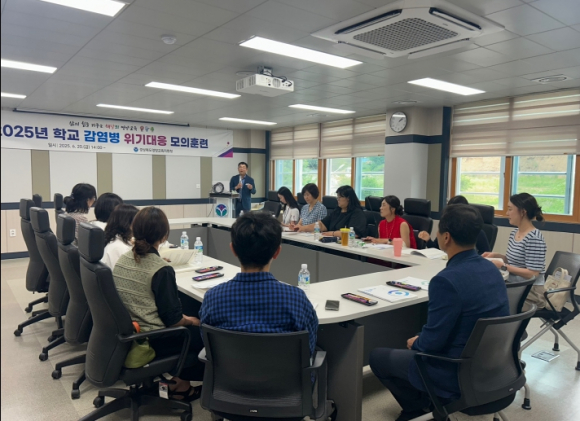 경상북도영양교육지원청은 2025년 6월 20일 교육지원청 대회의실에서 관내 학교 보건(담당)교사 및 영양군보건소관계자가 참여하여 감염병 위기대응 모의훈련을 실시했다. 이번 모의훈련은 학교 내 감염병 발생시 신속하고 정확한 대응 체계를 점검하고, 학생과 교직원의 안전을 확보하기 위한 목적으로 마련됐다. 특히 실제 상황을 가정한 시나리오 기반 훈련을 통해 현장 대응 역량을 강화하고, 기관 및 학교 구성원 간 협조 체계를 공고히 하는데 중점을 두었다. 박근호 교육장은“감염병은 언제든 발생할 수 있는 위기 상황인 만큼, 실제 상황에 준하는 모의훈련을 통해 감염병 유행시 당황하지 않고 구성원간 협조하여 각자의 역할을 수행하는 사전 대응 능력을 길러야 한다”며 앞으로 학생과 교직원이 안전한 교육환경에서 생활할 수 있도록 지속적으로 훈련을 실시해 나가겠다고 말했다. 한편, 감염병 대응 모의훈련은 일선 학교의 주요 구성원들이 함께 모여 본인의 학교 상황에 맞게 실제 감염병 유행 상황을 가정하여 학교 구성원 각자가 본인의 역할을 확인하고 미리 고민하면서 함께 문제를 해결해 보는 과정으로 학교에서도 담임교사, 보건교사, 학교관리자, 부장교사, 행정실장이 모두 참여하여 실시하도록 하고 있다.